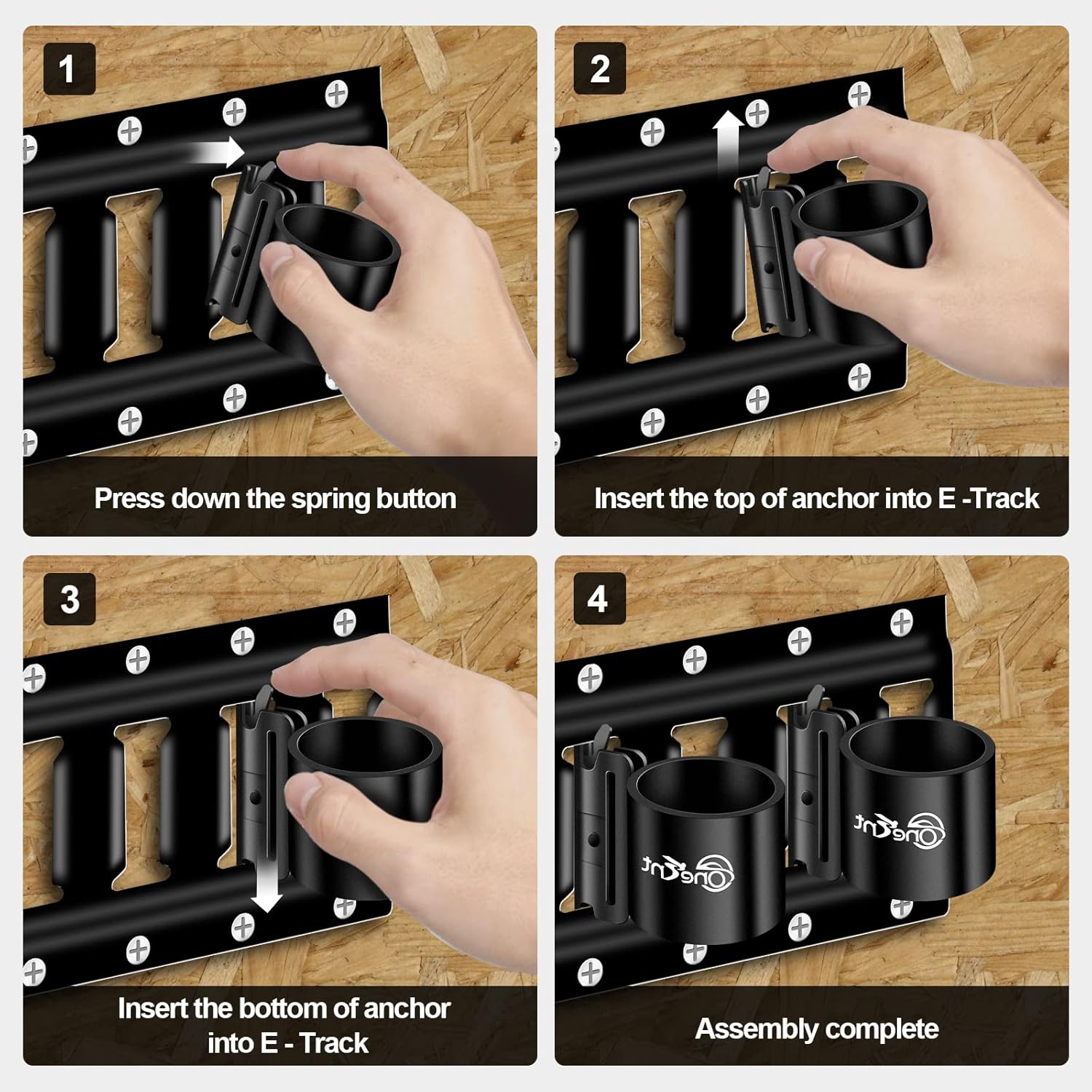 - Easy to Use:These e track tool stabilizers with E track spring fitting attachments that make you can install easily and quickly. Just snap them into the anchor points of E-track, X-track or e track single slots, you can keep it fixed against the wall in your garages, warehouses, enclosed trailers, or vans.