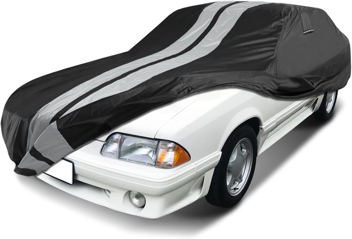 iCarCover Custom Car Cover Compatible with Mustang 1979-2004, Waterproof All Weather Rain Snow UV Sun Protector Full Exterior Indoor Outdoor Car Covers, Stripe (Black/Gray)