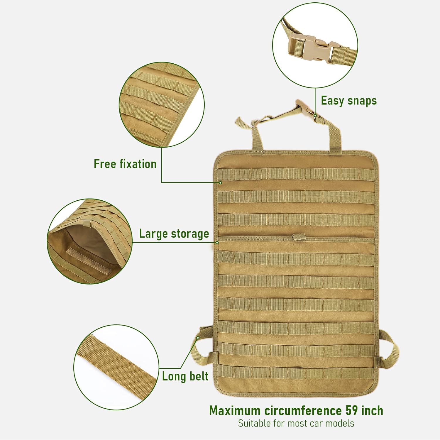 - 🚗 Multifunctional Storage - Design with 5 Molle bags on the back to help you store tactical gear & personal items and save space. Difference sizes of Molle bags help you classify your items so easily.you can set the Tactical Seat ​Back Organizer according to your own habits and need.