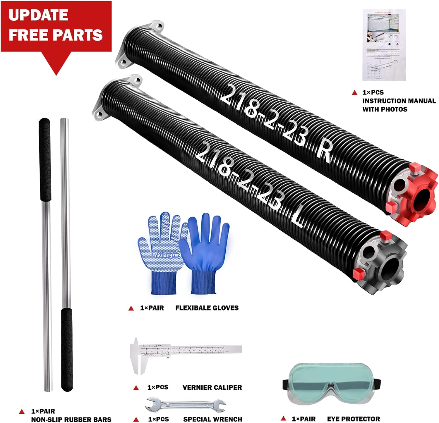 2" Garage Door Springs, Garage Door Spring Replacement,Torsion Springs Pair for Garage Door Set Includes Left Right Door Springs, with Non-Slip Winding Rods for DIY Replacement (0.218x2''x23'')
