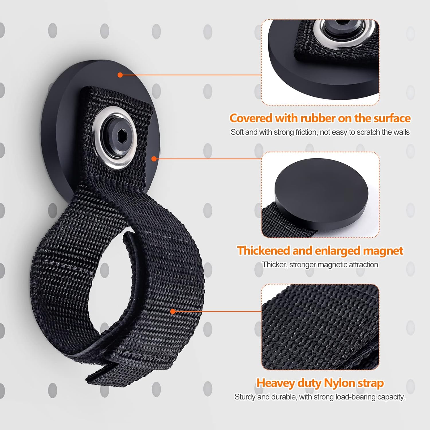- Product Dimensions: The magnet has a diameter of 2.59 inches, and the long side of the nylon strap measures 6.1 inches, while the short side measures 3.74 inches. The strap with velcro can be adjusted in length to hang various types of heavy tools.