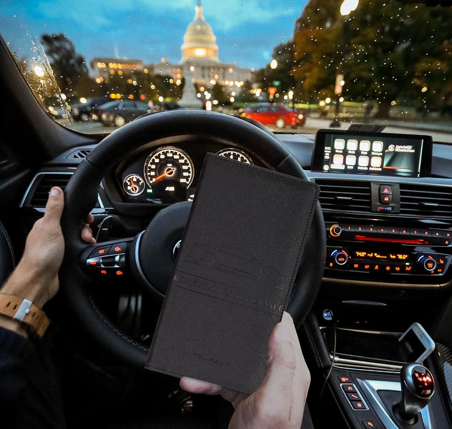 - 💖Premium Material: The car manual holder is made from high-quality ECO-friendly PU leather material. The car insurance holders with the best sewing and crafted is durable, wear-resistant, and has a luxurious look. This material of the registration holders is durable, wear resistant and waterproof. The insurance card holder for car has a clear window so you can easily see all the documents when you open it up.