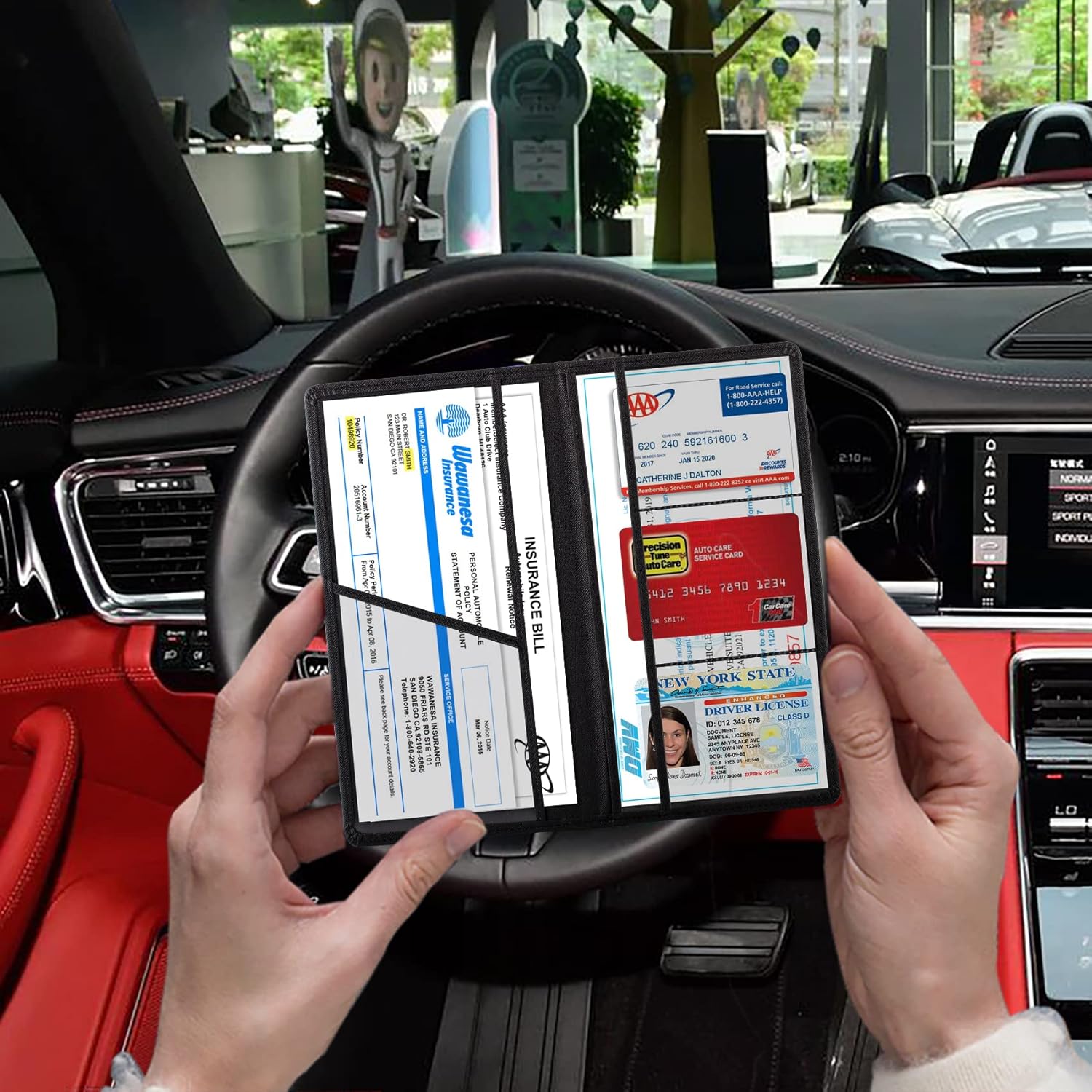 - 👁️Quick Accessible: Inside the car insurance and registration card holder, the clear inner material makes you easy to find documents when you open it up, you can see exactly what they are and quickly show them when asked, even no need to take the stuff out.