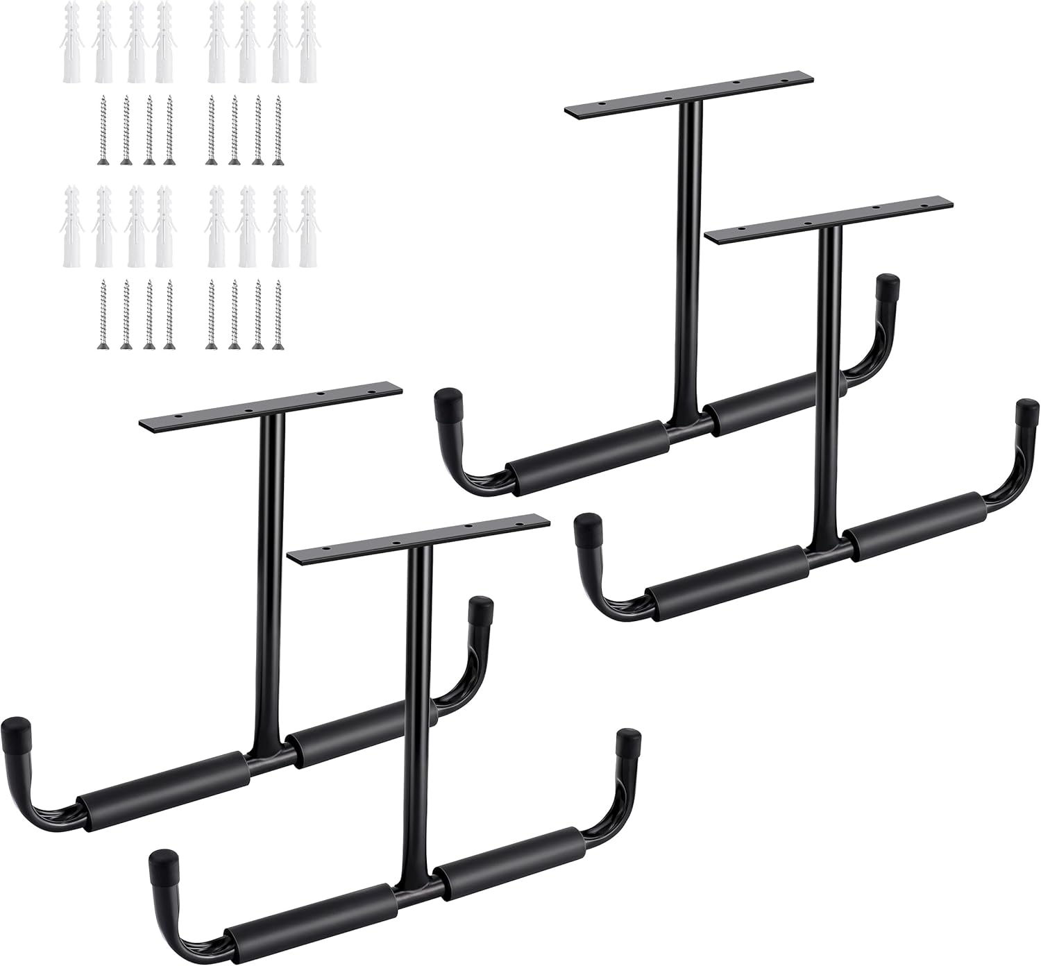 - Durable and Sturdy: Made of high-quality iron with a thick anti-corrosion coating, this heavy duty garage storage hangers is built to last. Its sturdy construction ensures it can hold heavy items securely.