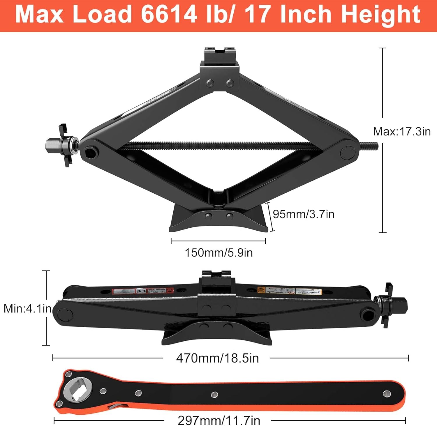IMAYCC Scissor Jack, Portable Car Jack Kit 6614 lbs (3 Ton), Universal Tire Change Kit for Auto/SUV/MPV - Tire Jack Max 17 Inch