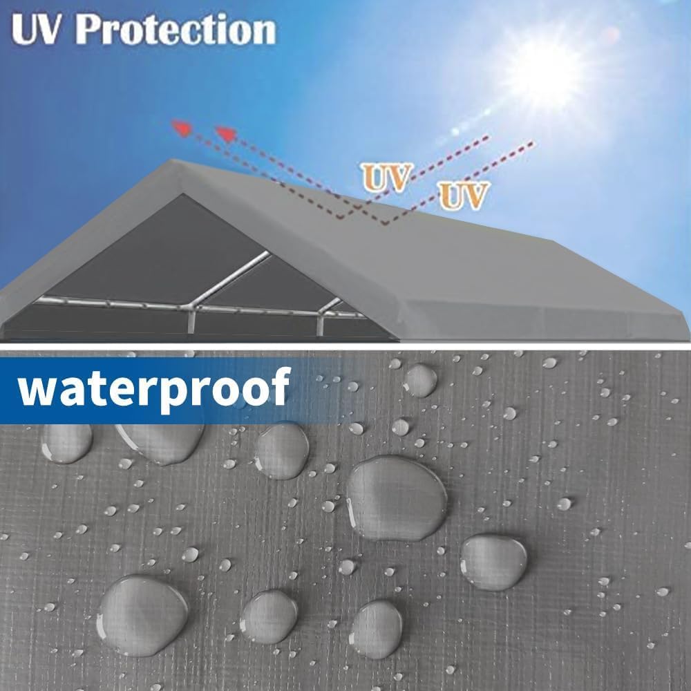 - ăWATERPROOF CANOPY COVER Onlyă- This Top replacement Roof Cover is Made of Heat-sealed Polyethylene Fabric, which is Anti-UV, Waterproof and Can Protect Your Car or Vehicles against Dust, Sun, Wind, Rain and Snow. FRAME NOT INCLUDED