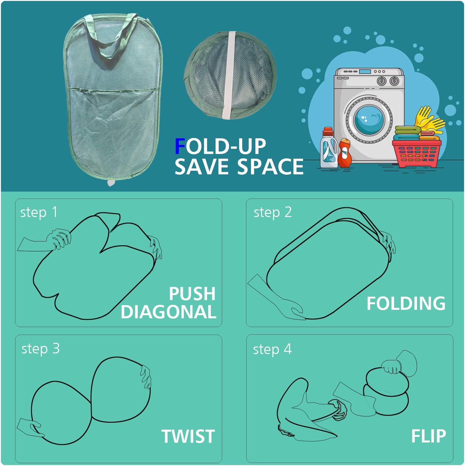 - SAVING SPACE: When not in use, you can easily fold the pop-up hamper flat for convenient storage or carry.Just twist the flexible lightweight frame.
