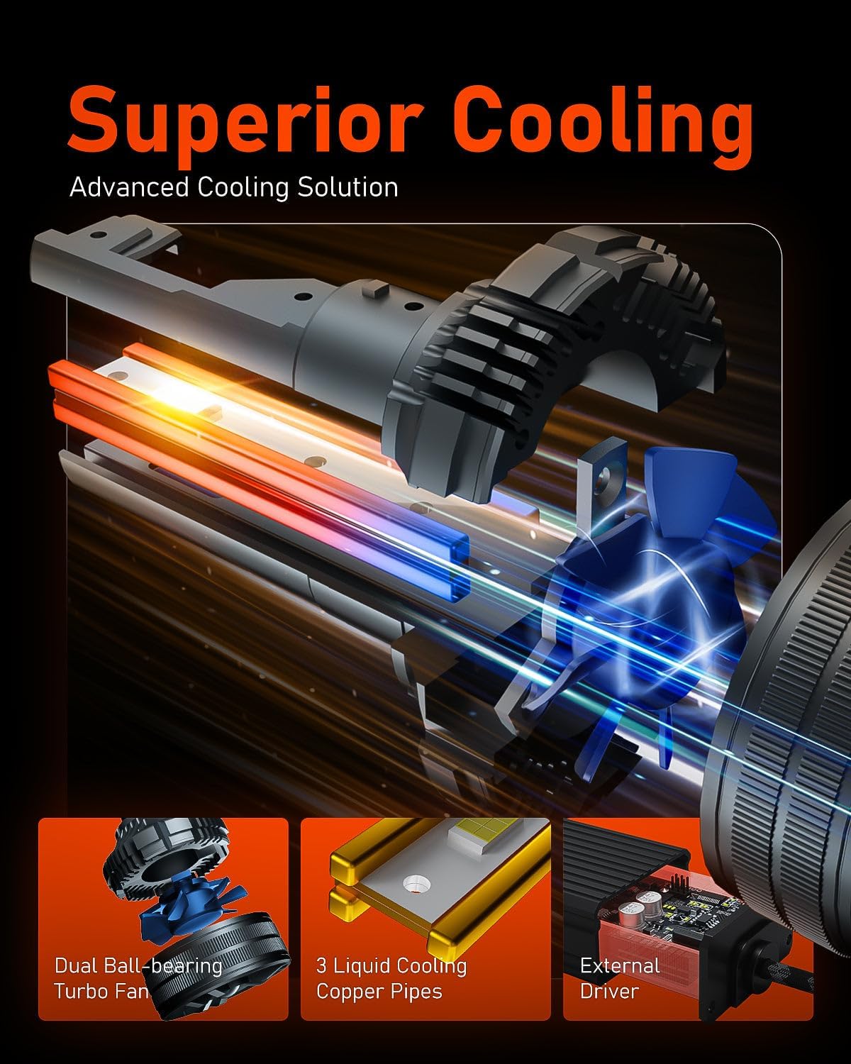 - 140W High Power TalonLED - Each Luxster LED bulb operates at 70W, delivering a combined high power output of 140W. Our Punisher series utilizes cutting-edge TalonLED CSP chip technology, offering unmatched power and efficiency. With the same power consumption, TalonLED outperforms competitors by threefold.