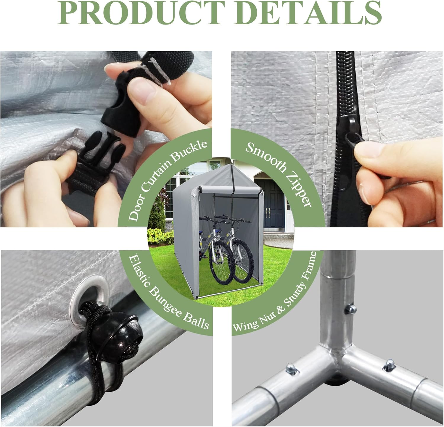 - STURDY FRAME: The frame of our bike storage shed is made of thickened galvanized steel that is rust-proof and provide more stability. Protect your items with our outdoor storage shed for bike.