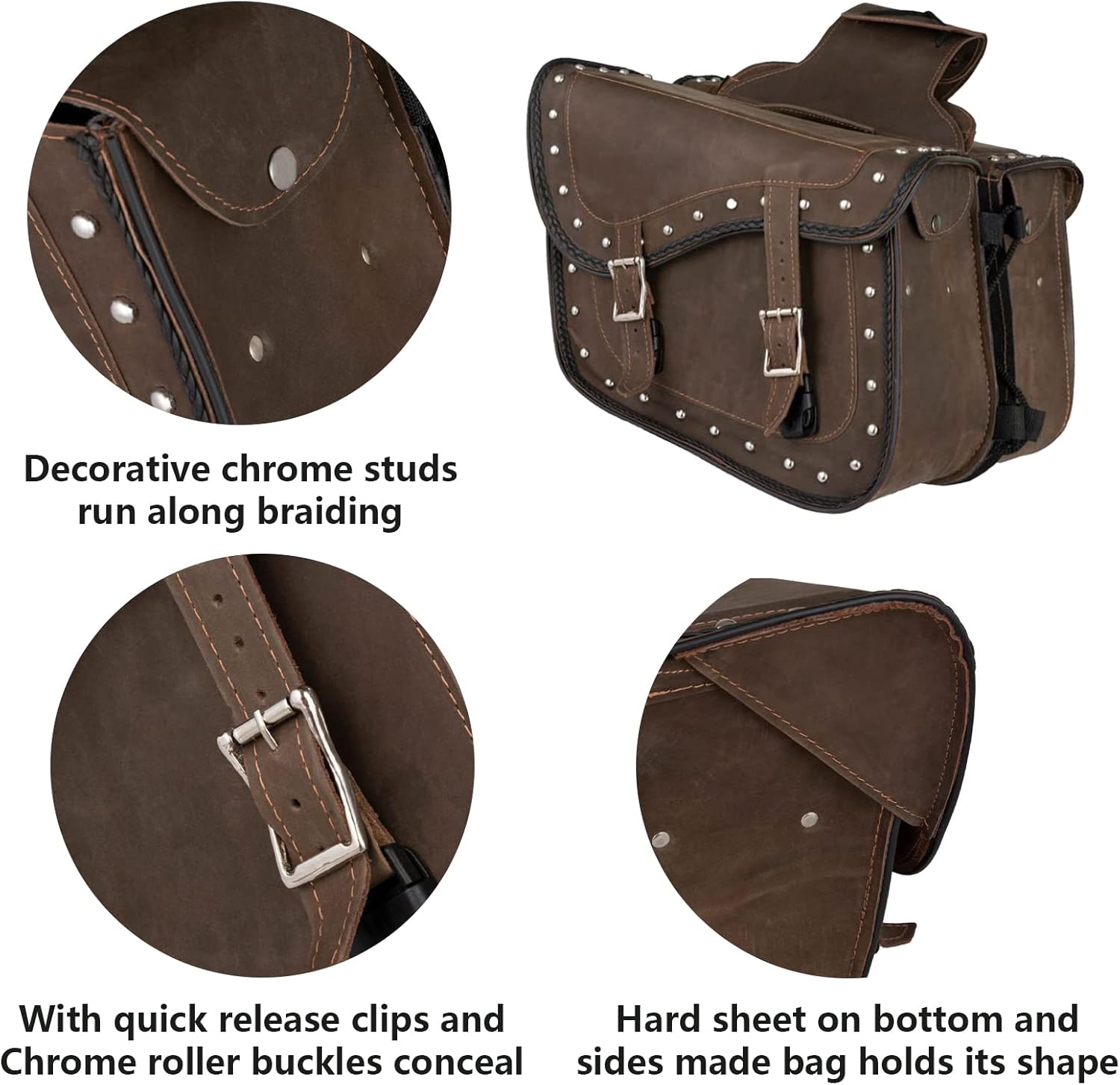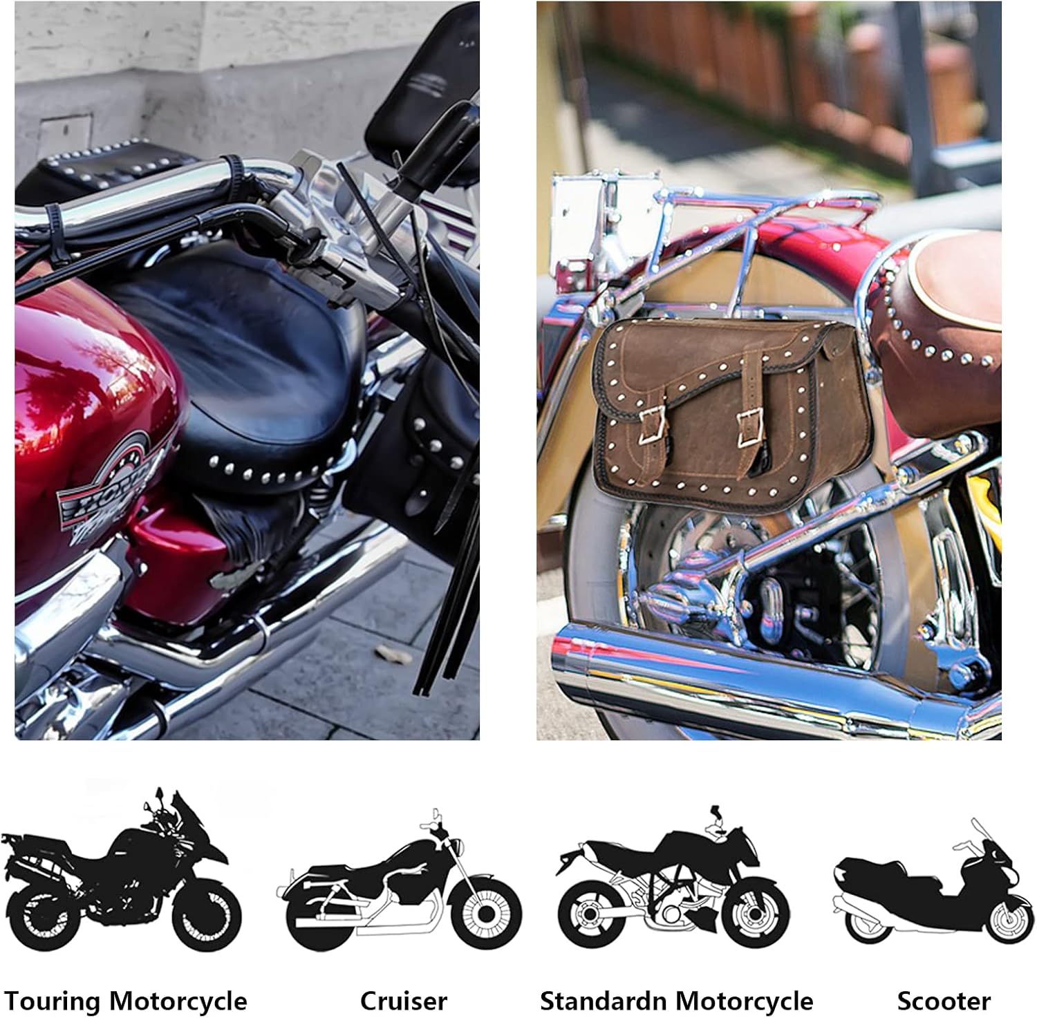 • 【Leather Material】This motorcycle saddlebags is made up of soft and durable heavy-duty leather. The reinforced sewing and moderate thickness make our motorcycle saddle bag can always keep its shape and longer service life.