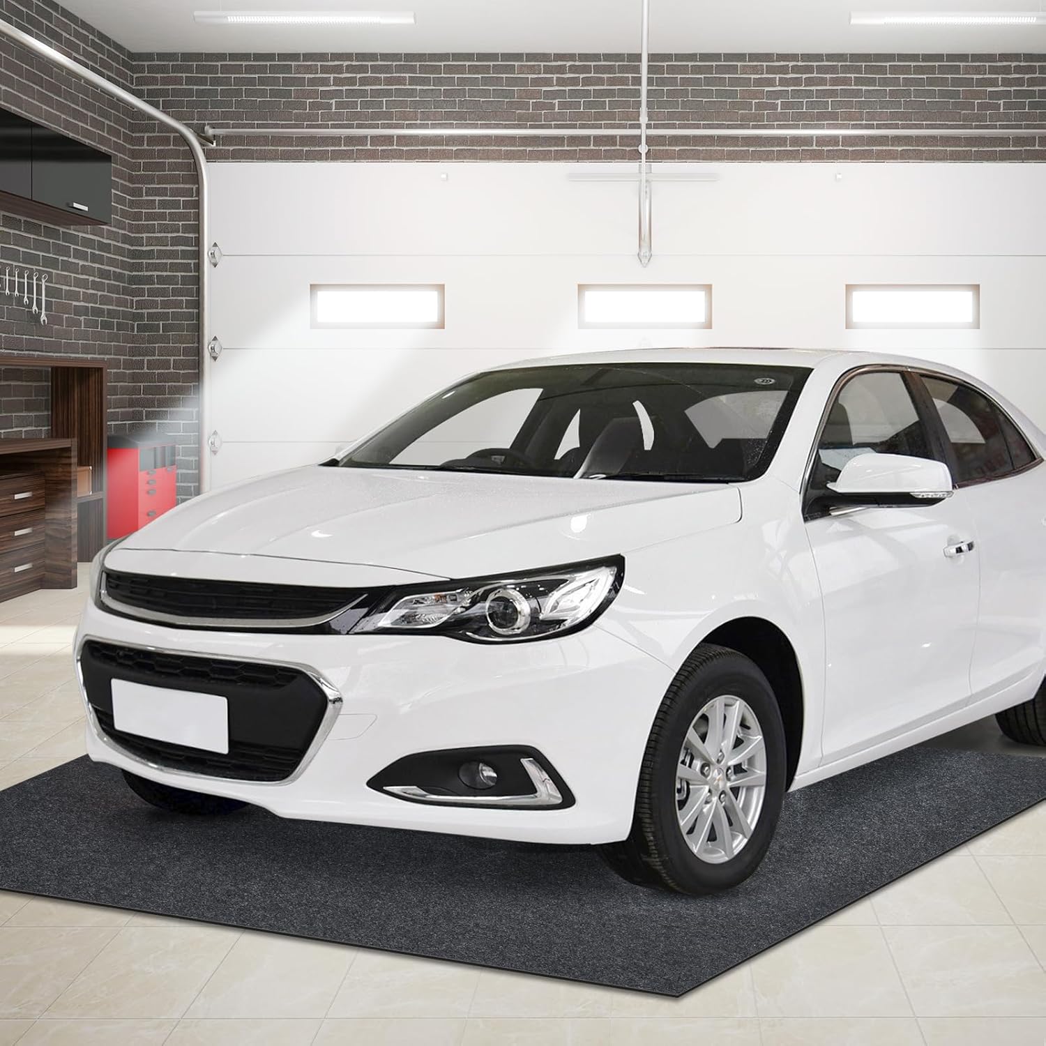- ăDurable MaterialăThe garage mat is made of tight felt and TPR material. The felt on the top is high-density woven and the TPR on the bottom will not come off, so it won't ruin your floors. You can use it for a long time.