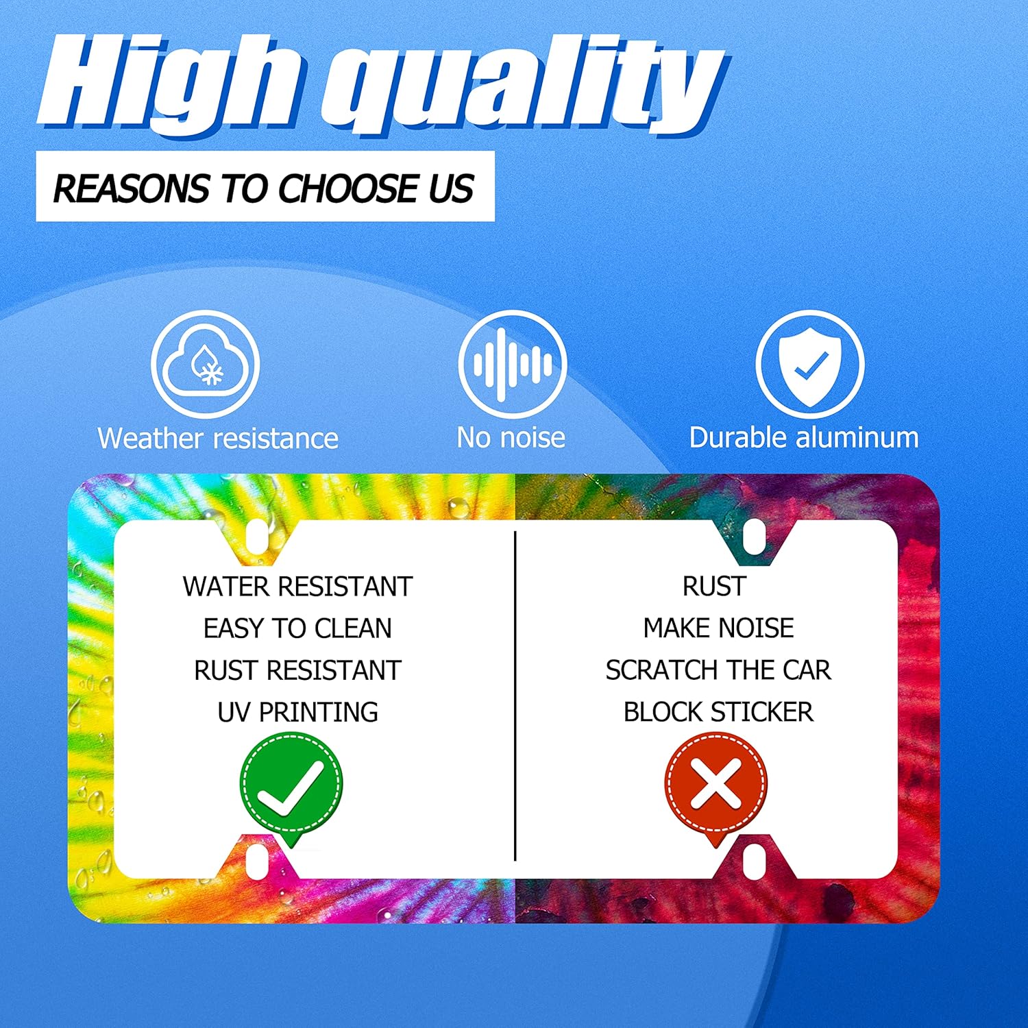 Colorful Hippie Tie Dye License Plate Frame Beautiful License Plate Stainless Steel Parts Funny License Plate Decorative with Screws Size 12.3" x 6.3" Women