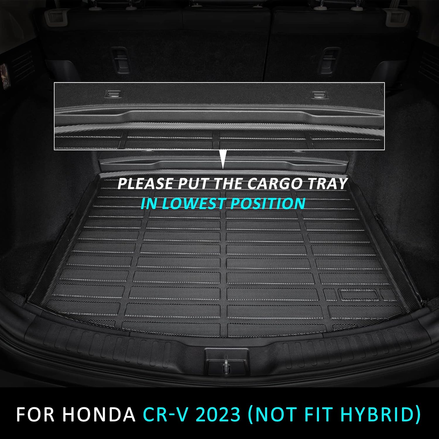 - 【CUSTOM FIT】 ANBINGO Floor mats and cargo liner fit for Honda CRV 2023 2024 2025 (Not fit Hybrid Models). The car mats include front and rear rows, and trunk liner. Custom fit for CR-V LX | EX | EX-L. Cargo Tray in Lowest Position
