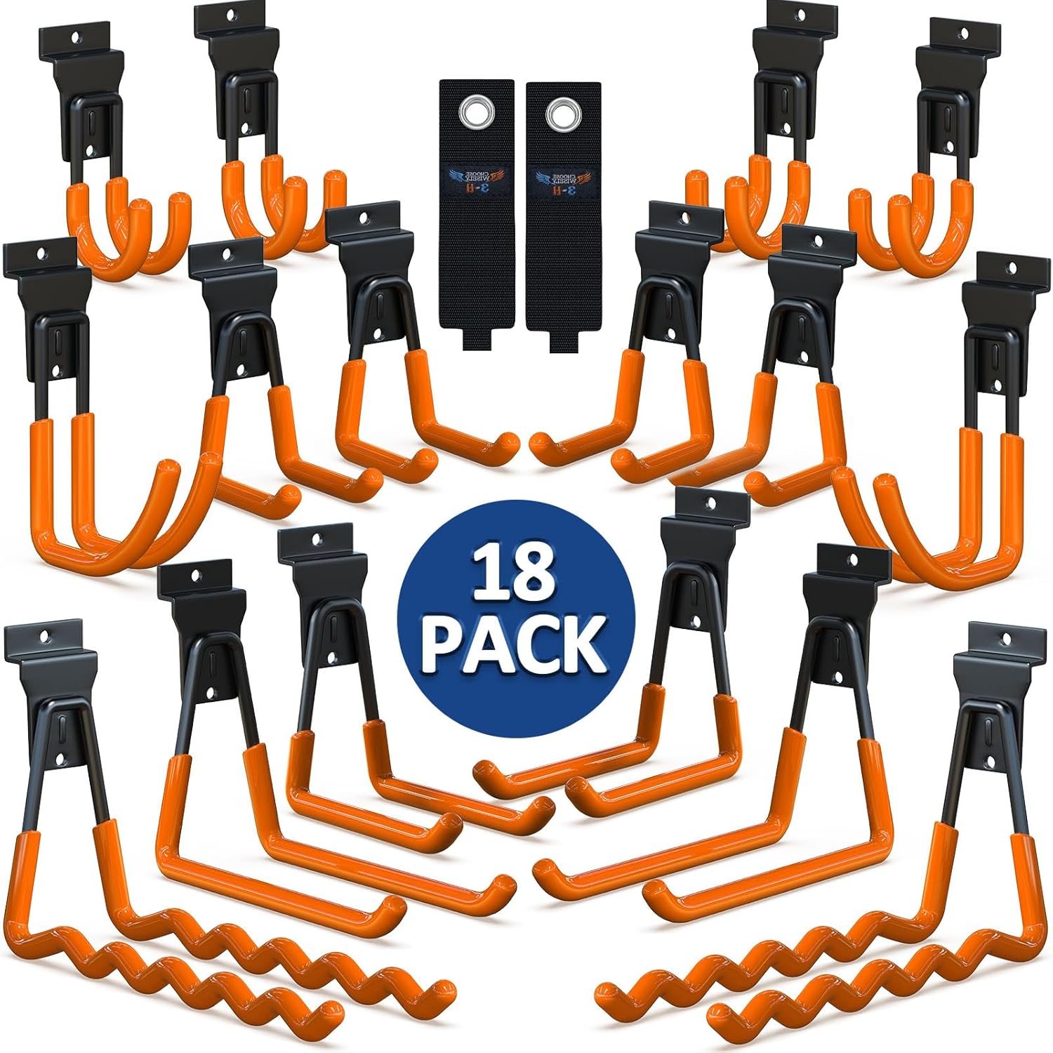 - Multi Sizes Slat Wall Hooks: 18 pcs slat wall accessories in 7 different sizes 2 extension cord organizers, including 2 large wave hooks,2 large square hooks, 2 medium square hooks, 4 small square proslat hooks, 2 media J hooks and 4 small J hooks which can accommodate different types of garden tools and equipments