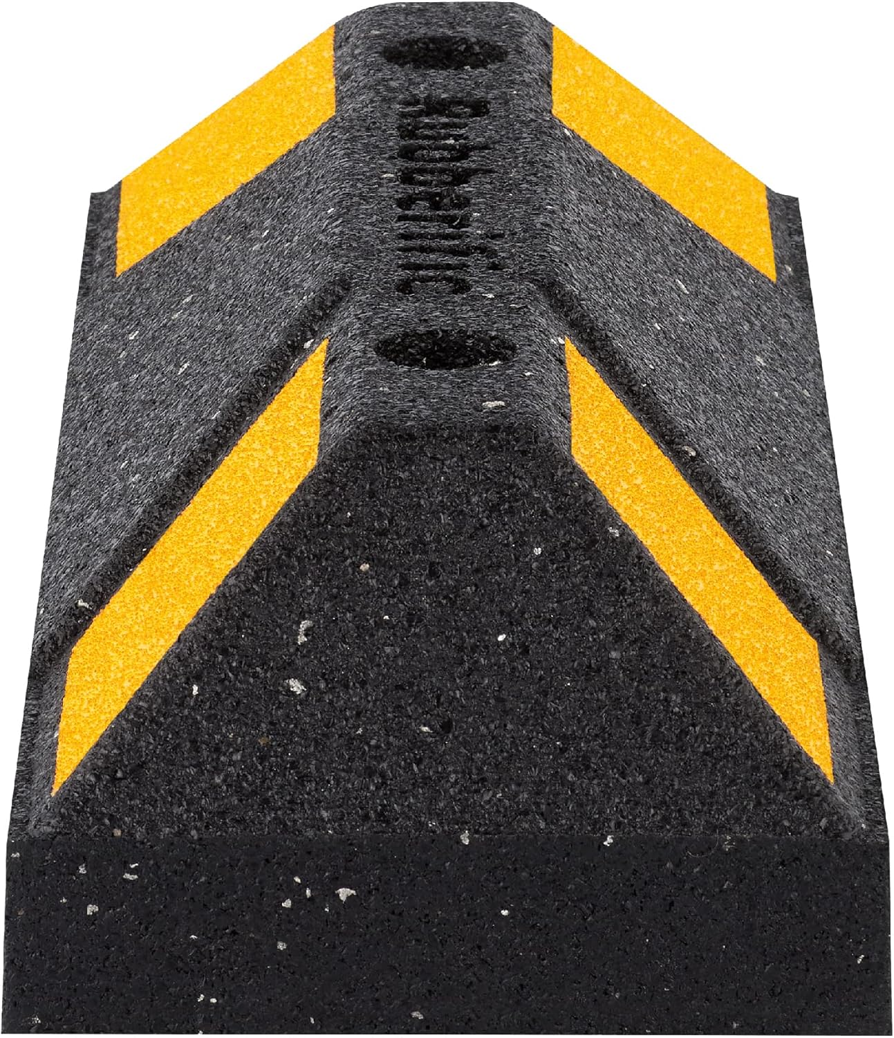 Rubberific Heavy Duty Rubber Parking Stop Durable Easy to Install Reflective Parking Curb Garage Car Stopper for Indoor and Outdoor Use (4 Pack)