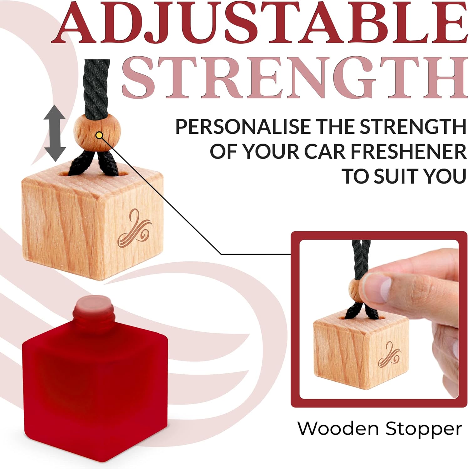 - ADJUST THE STRENGTH TO SUIT YOU - Personalise your car smell air freshener to suit your taste. Simply move the wooden stopper up and down the diffuser chords to set the strength to your liking.