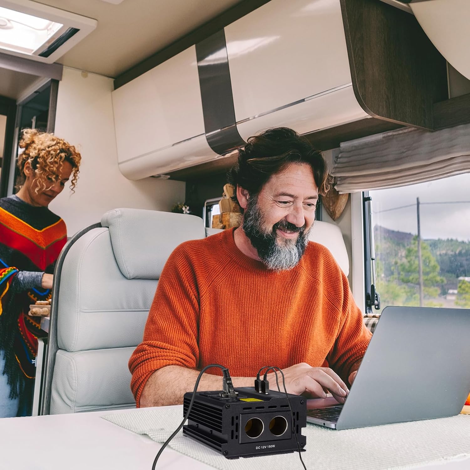 - Great Fast Charging Design: 110V AC outlets for charging larger devices such as laptops and tablets, USB charging ports (0-3.0 A, up to 50watt surge capacity) for powering USB compatible devices, Car Cigarette Lighters ( up to 150watt surge capacity). This car outlet adapter is a car accessories Digital Display inverter for powering Portable Audio, Camping Lamps, Digitals Cameras, Car Refrigerator, etc