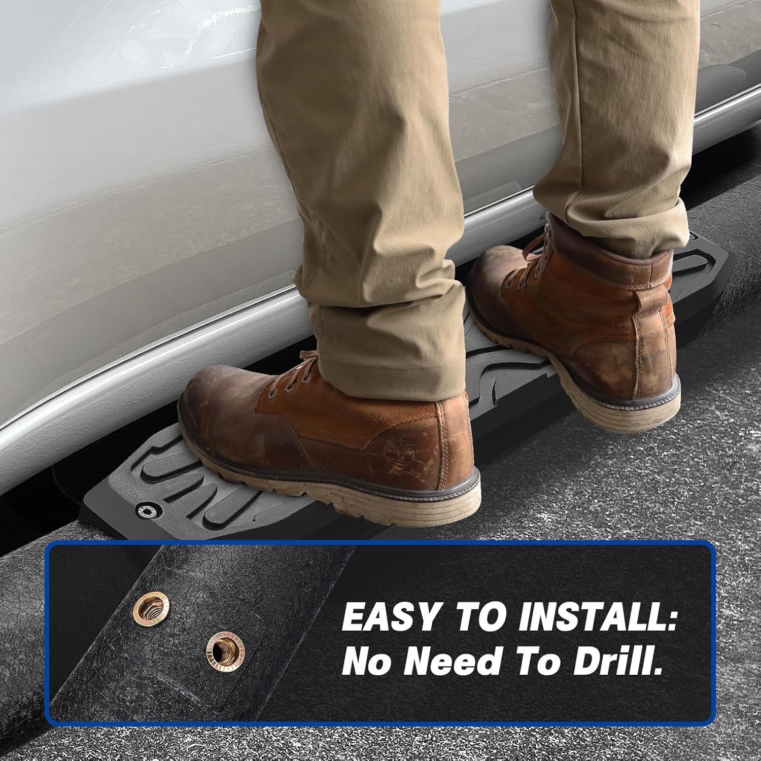 - EASY TO INSTALL: Non Welded Design Of Product, Just Mounted It, Direct Bolt On, No Need To Drill. The Items Include: 2 Running Board(left And Right), Brackets, Hardware, Detailed Instructions.