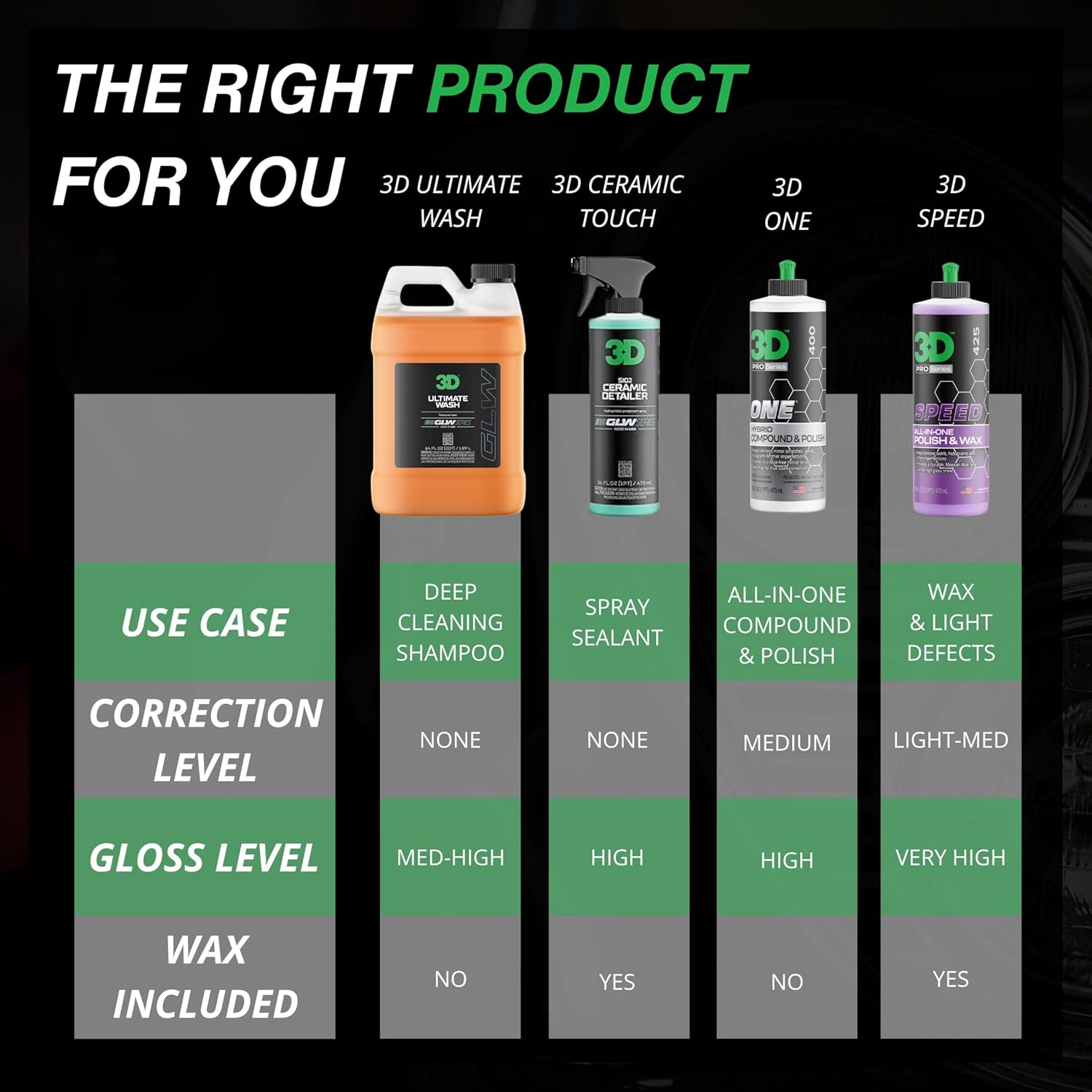 - High-Foaming Formula for Deep Cleaning: Engineered with a super sudsy blend, 3D GLW Ultimate Wash delivers massive foam that clings to paint, lifting dirt and grime with ease. Perfect for touchless pre-washes or bucket washes that leave your ride looking freshly detailed every single time