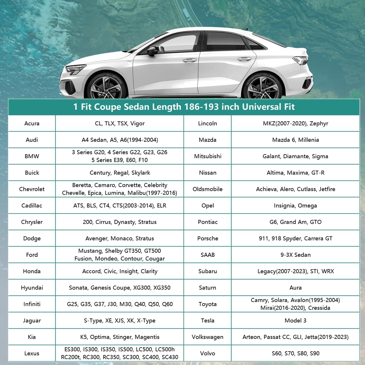- ăModel ChoiceăGUNHYI automobiles cover is suitable for Coupe, Convertible, Length 186 to 193 inch (Not for SUV Hatchback). For exmaple--Chevrolet Chevy Camaro/Corvette, Ford Mustang/Shelby/Thunderbird, Toyota Camry, Honda Accord, Kia Optima, BMW 5 Series 525i, Cadillac Eldorado, Jaguar XJS/XK-Series, Mercedes-Benz C-Class/E-Class/SL-Class/SLS-Class, Lexus LC-Series/SC-Series, Bentley Continental, Mitsubishi 3000GT, Nissan GT-R etc.