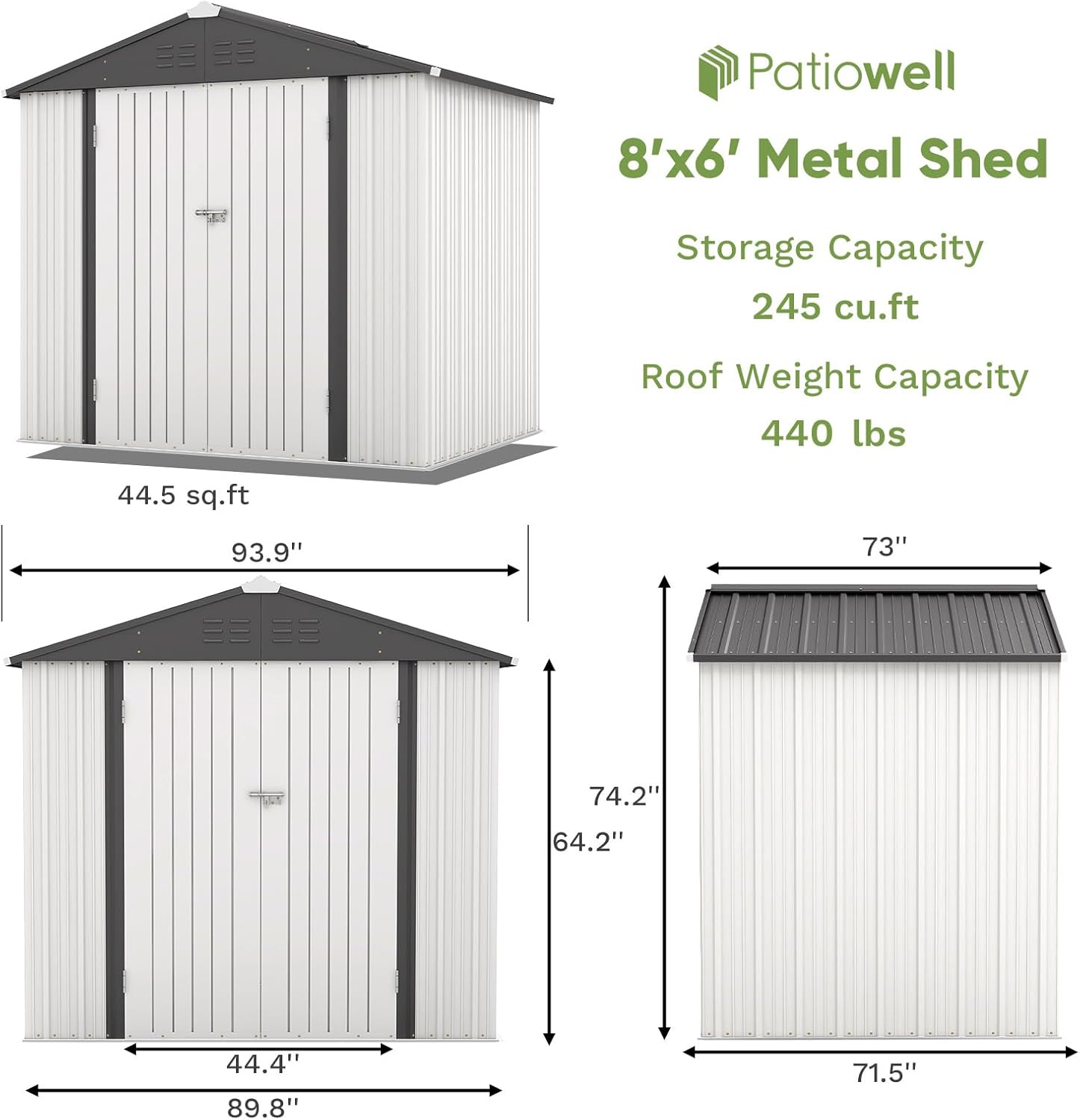 Patiowell Outdoor Storage Shed 8x6 FT, Garden Tool Storage Shed with Sloping Roof and Double Lockable Door, Outdoor Shed for Backyard Garden Patio Lawn, White