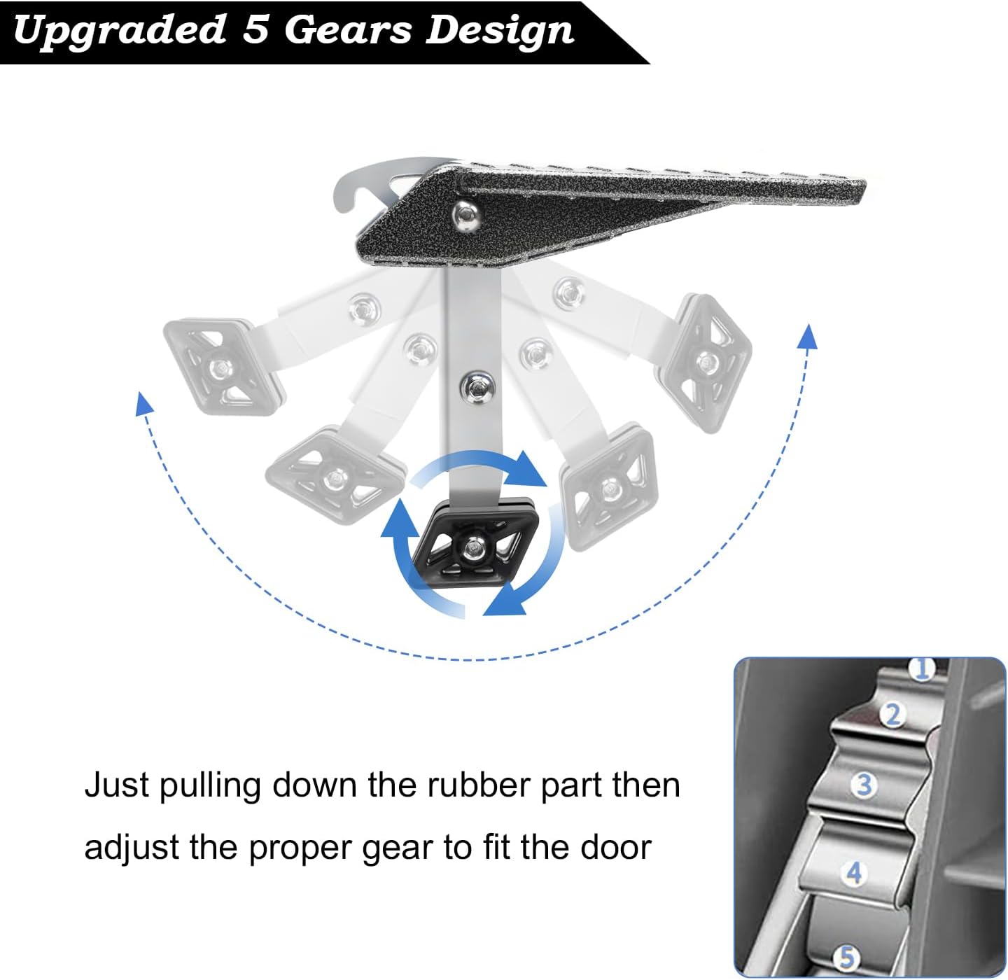- Upgraded 5 Gears and Easy Installation: Upgraded 5 gears design provides 5 options for adjusting the leveling angle to ensure stability. Quickly access the roof in a few simple steps by hooking the latch, then pulling down the rubber part and adjusting the proper gear to fit the door