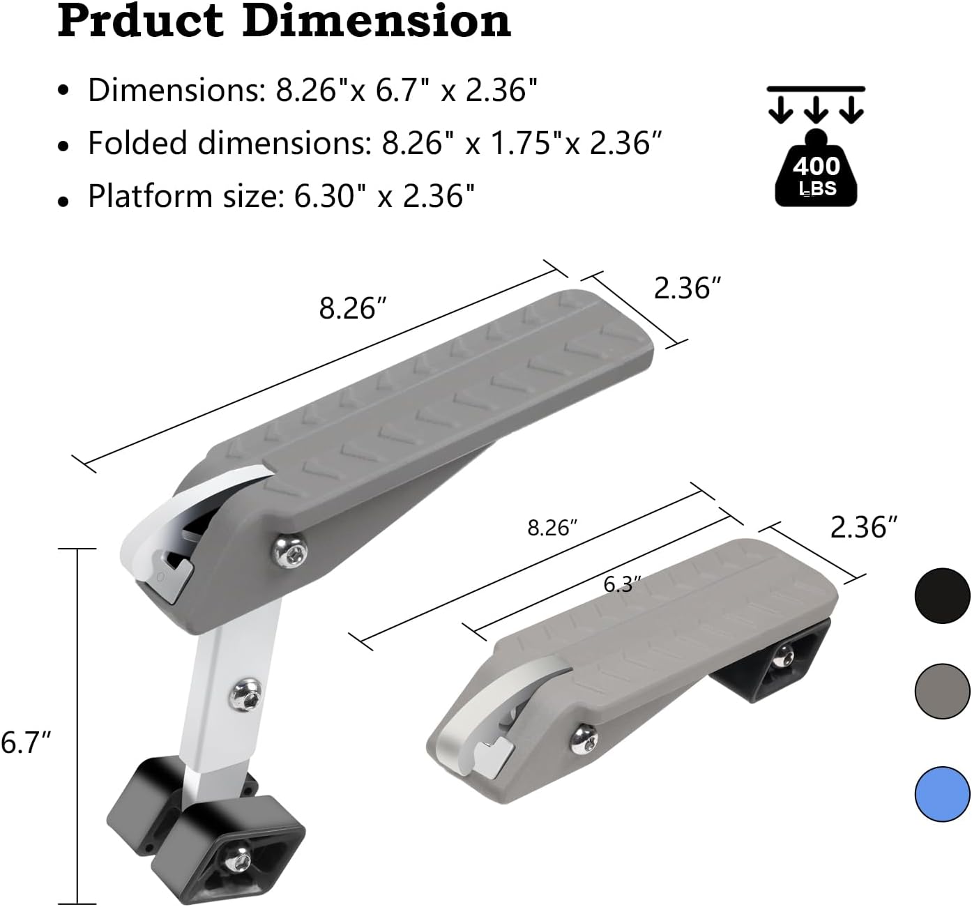 - Stable Pedal: The wide pedal platform offers enough room for nearly both feet and anti-slip design on the step surface ensures safety. The rotatable rubber wheel fits most door frames, preventing scratching