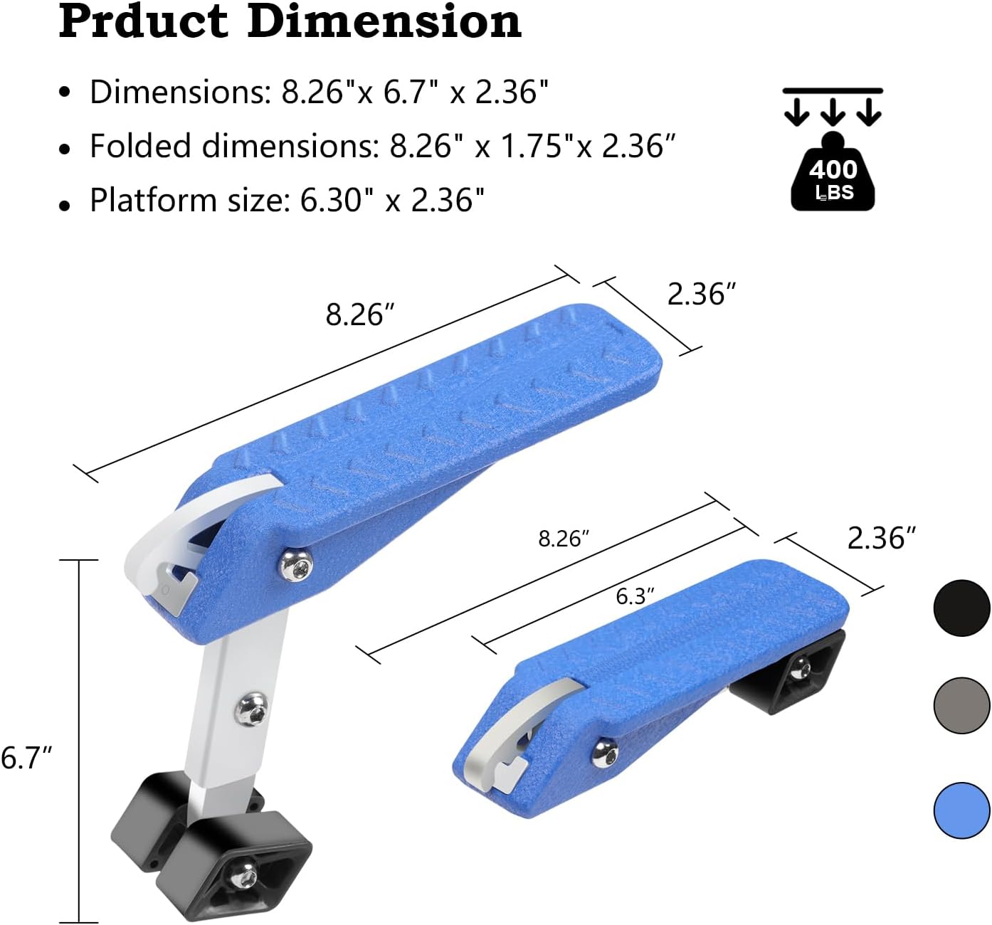 - Safe Design: Designed for the front and rear doors of all vehicles, the car door step features a scissor lock structure design with bidirectional force. Crafted from high-quality aluminum and iron, this doorstep is lightweight yet robust and durable. It can withstand a load of up to 400 pounds without deformation