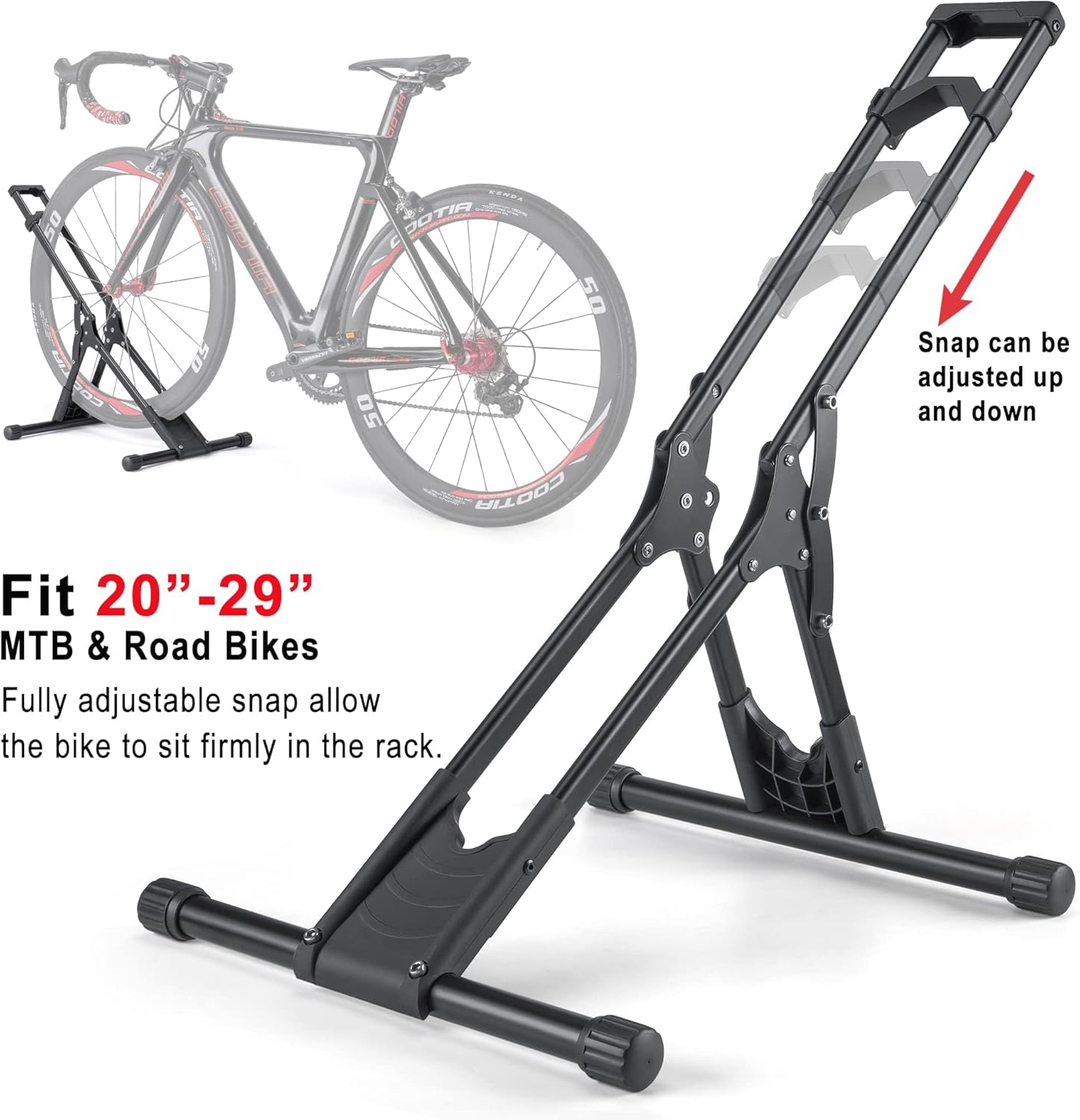 - COMPATIBILITY: Fully adjustable slider's positions allow the bike to sit firmly in the rack. The Bike Floor Stand is compatible with 20"-29" road bikes, cyclocross bikes, mountain bikes and hybrid bikes—with any tyre size up to 2.4 inch. It is not recommended for heavy e-bikes though.