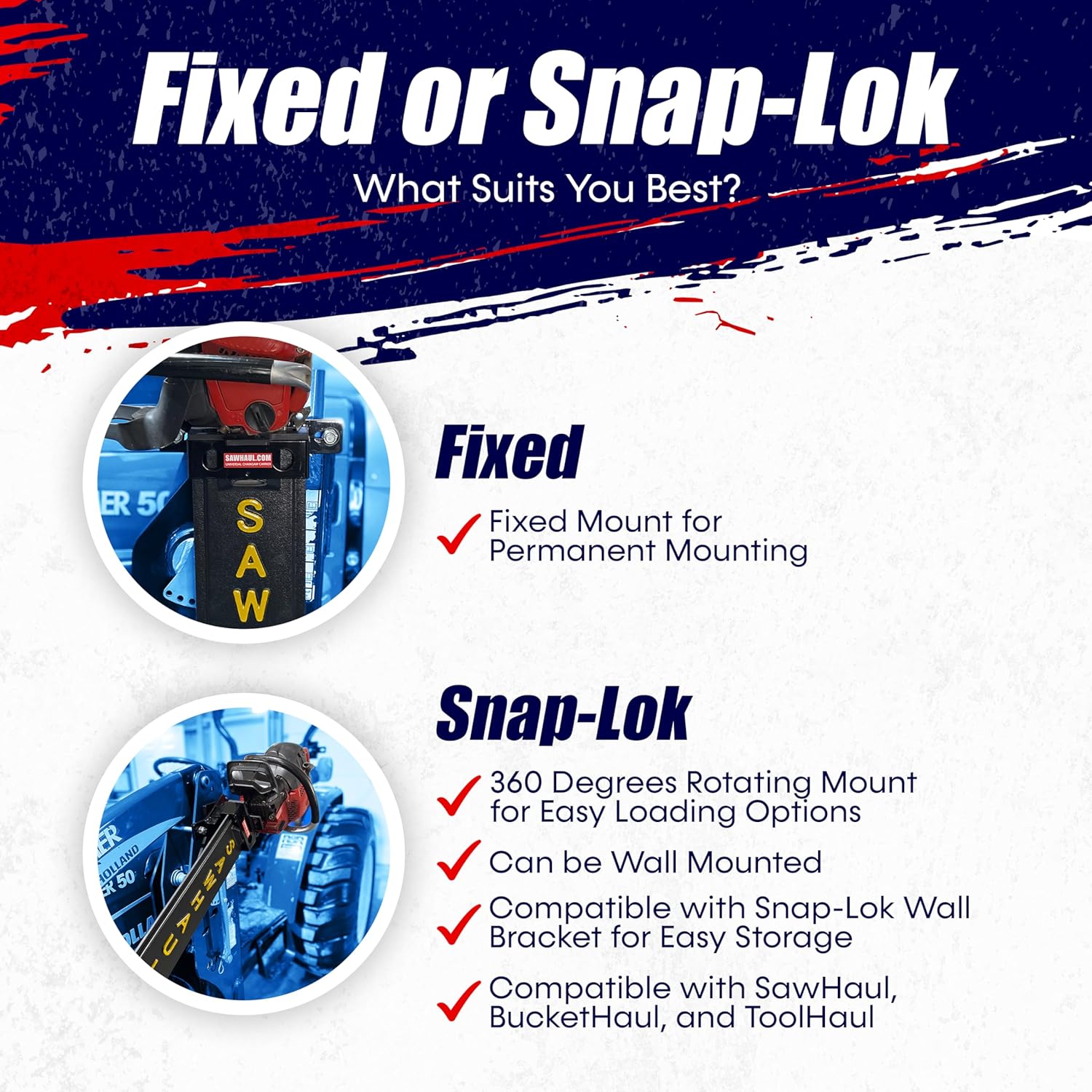 - PROTECT YOUR SAW AND YOUR TRACTOR. Transport with peace of mind using the SawHaul chainsaw mounting bracket, designed to safeguard your chainsaw and tractor from accidental damage. This chainsaw scabbard ensures secure storage during transit, minimizing wear and tear while reducing costly repairs.