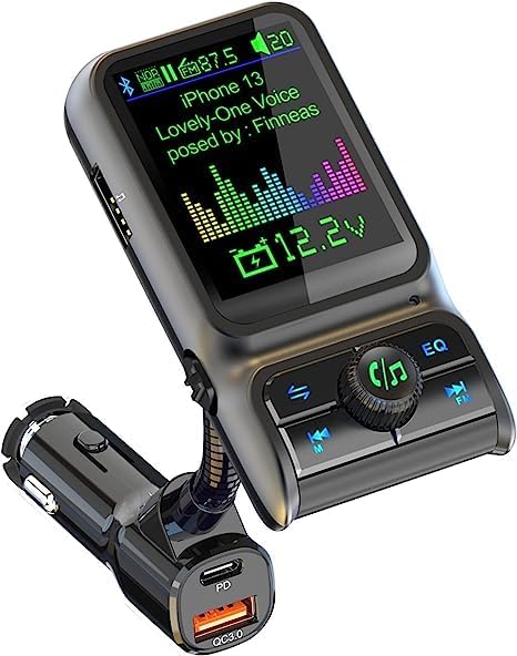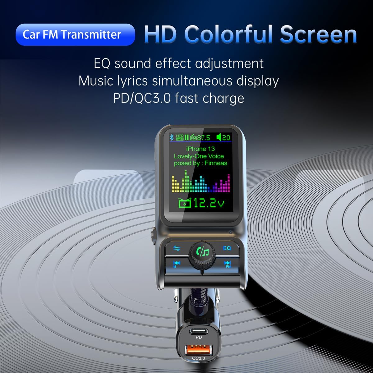BC85LK Wireless Bluetooth Car Adapter with QC 3.0 PD 3.0 USB C Fast Charger, Bluetooth 5.0 Radio Transmitter, Hands-Free Phone Call Support