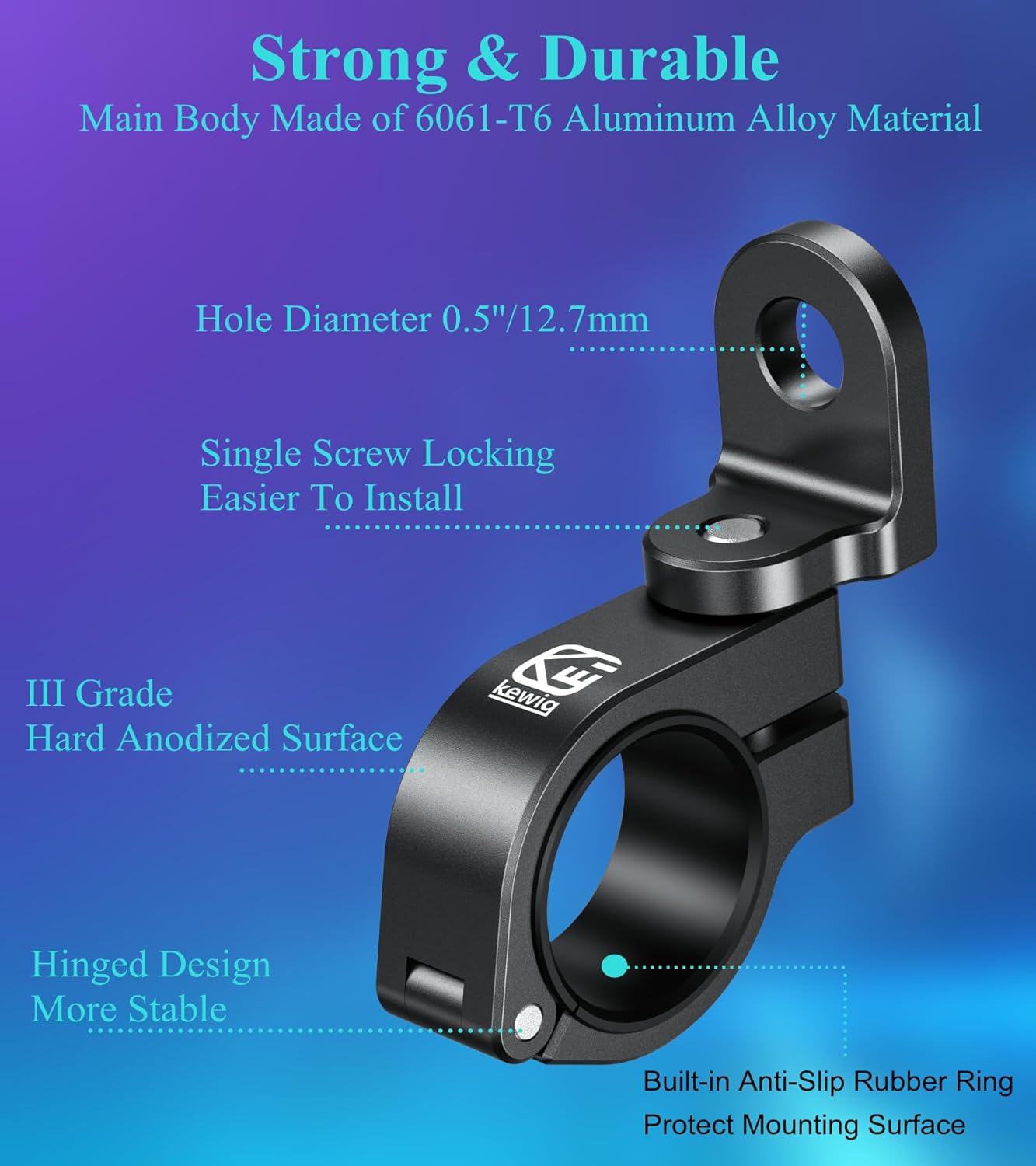 - The tube clamp mount with 360° rotating flag hole (Hole Diameter: 0.5''/12.7mm). Ideal for a variety of applications including whip lights, whip flags, antennas, light bars, LED off road lights and driving lights.