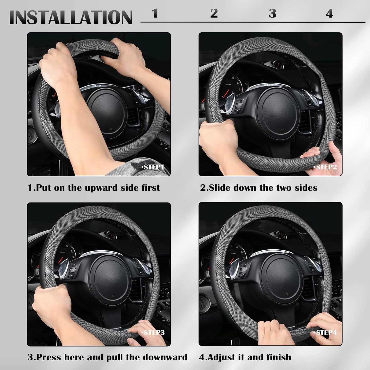 CAR PASS 3D Air Mesh Car Seat Covers Full Sets w/5mm Sponge, 4Pcs Waterproof Car Floor Mats, Steering Wheel Cover Universal Fit for SUV Sedan Truck, Airbag Compatible Automotive Interior(Black Gray)