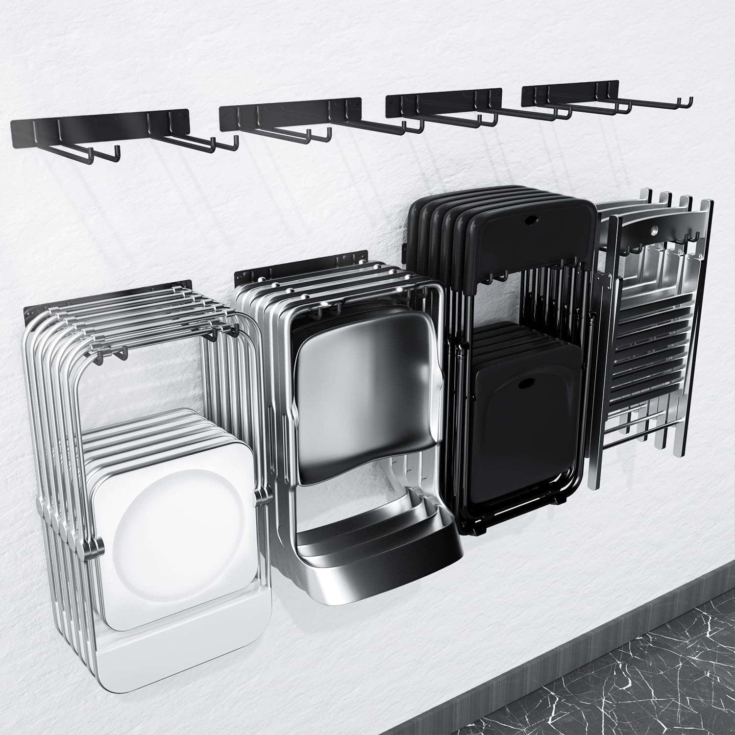 Folding Chair Storage Rack Wall Mount, Garden Tool Hanger for Garage Organization, Patio, Beach & Camping Chairs Organizer Hooks, Holds 480 lbs - 4 Pack