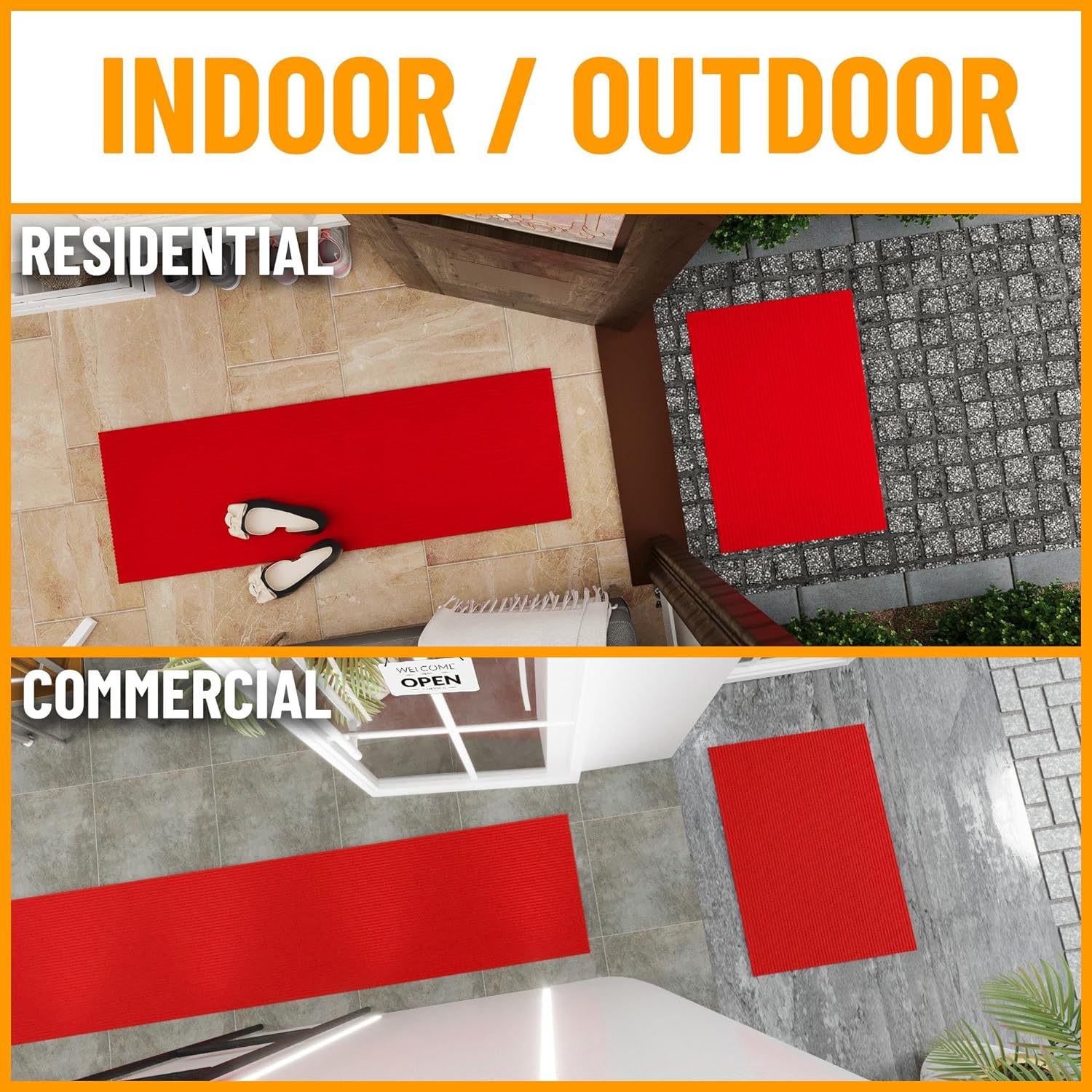 Ottomanson 2' x 19' Hallway Runner with Scraper Pile - Extra Durable Non-Slip Rug Mat for Indoor & Outdoor Use - Ideal for Kitchen, Entryway, Patio & Garage - High-Traffic Carpet, Red
