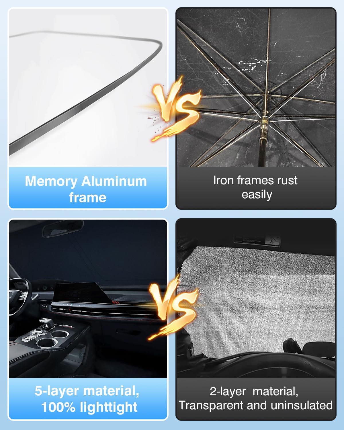 - 【Military Aluminum Frame】Our Sunshade is built to last, with high-strength aluminum alloy frame that allow our shade to bend repeatedly without deformation, making our sunshade stronger and more durable than other products on the market.