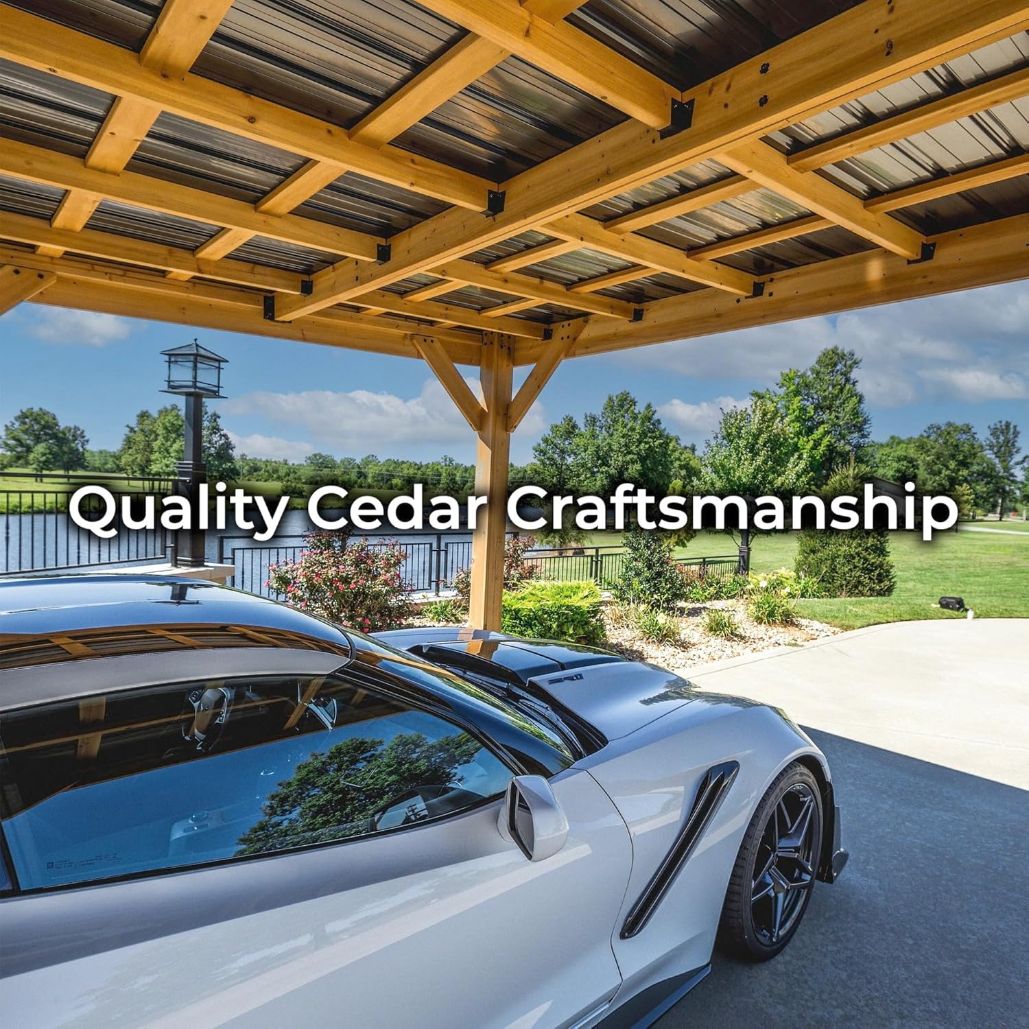 Backyard Discovery Kingsport 20' x 12' Cedar Wood Outdoor Carport Garage with Heavy-Duty Galvanized Steel Slope Roof, Snow Support, Wind Resistance, PowerPort, Shelter to Protect Cars, Boats, Trucks