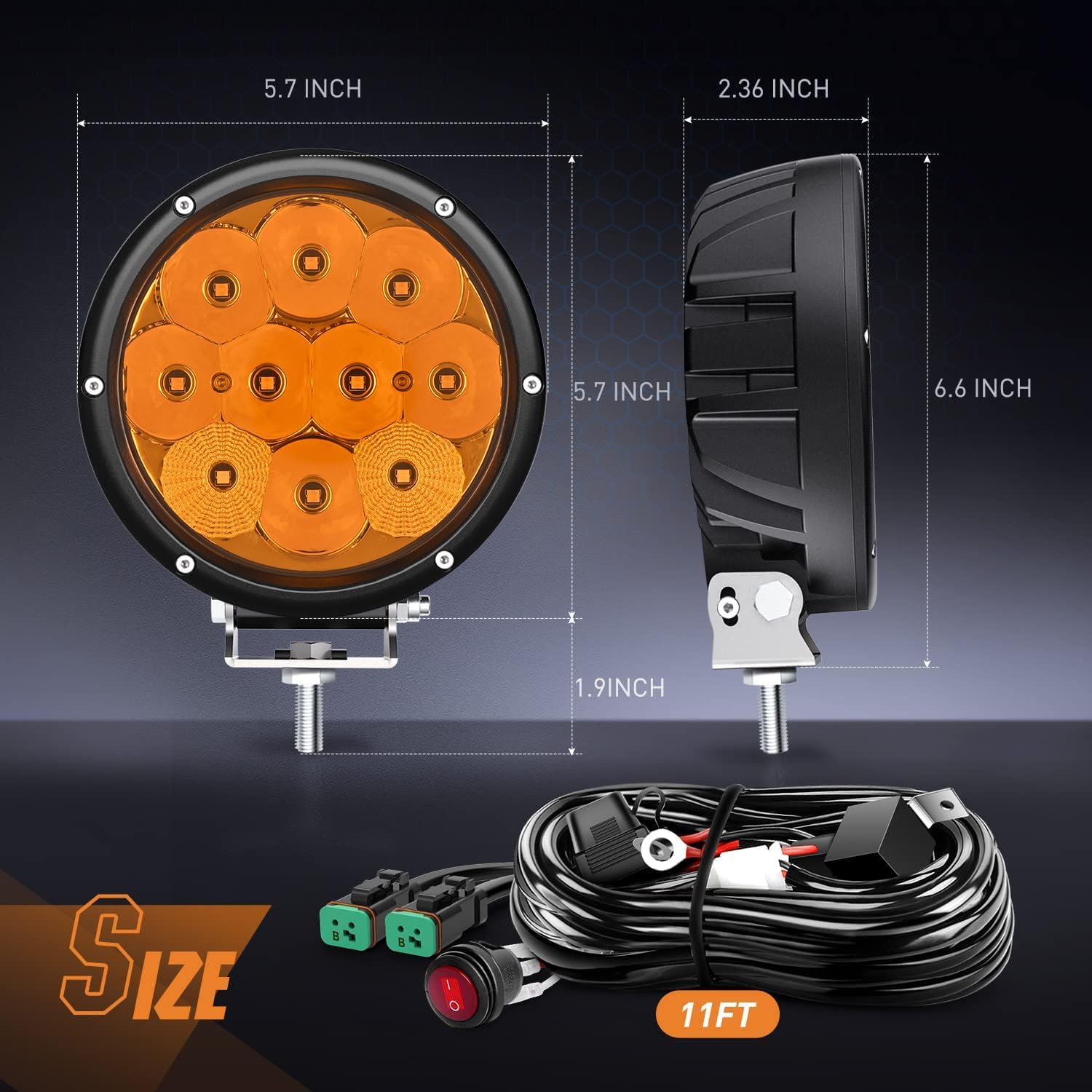Nilight 5.7 Inch Amber LED Driving Light Round 50W Yellow Fog Spot Flood Combo Lights w/ 16AWG DT Connector Wiring Harness IP68 for Offroad ATV UTV Truck Tractor