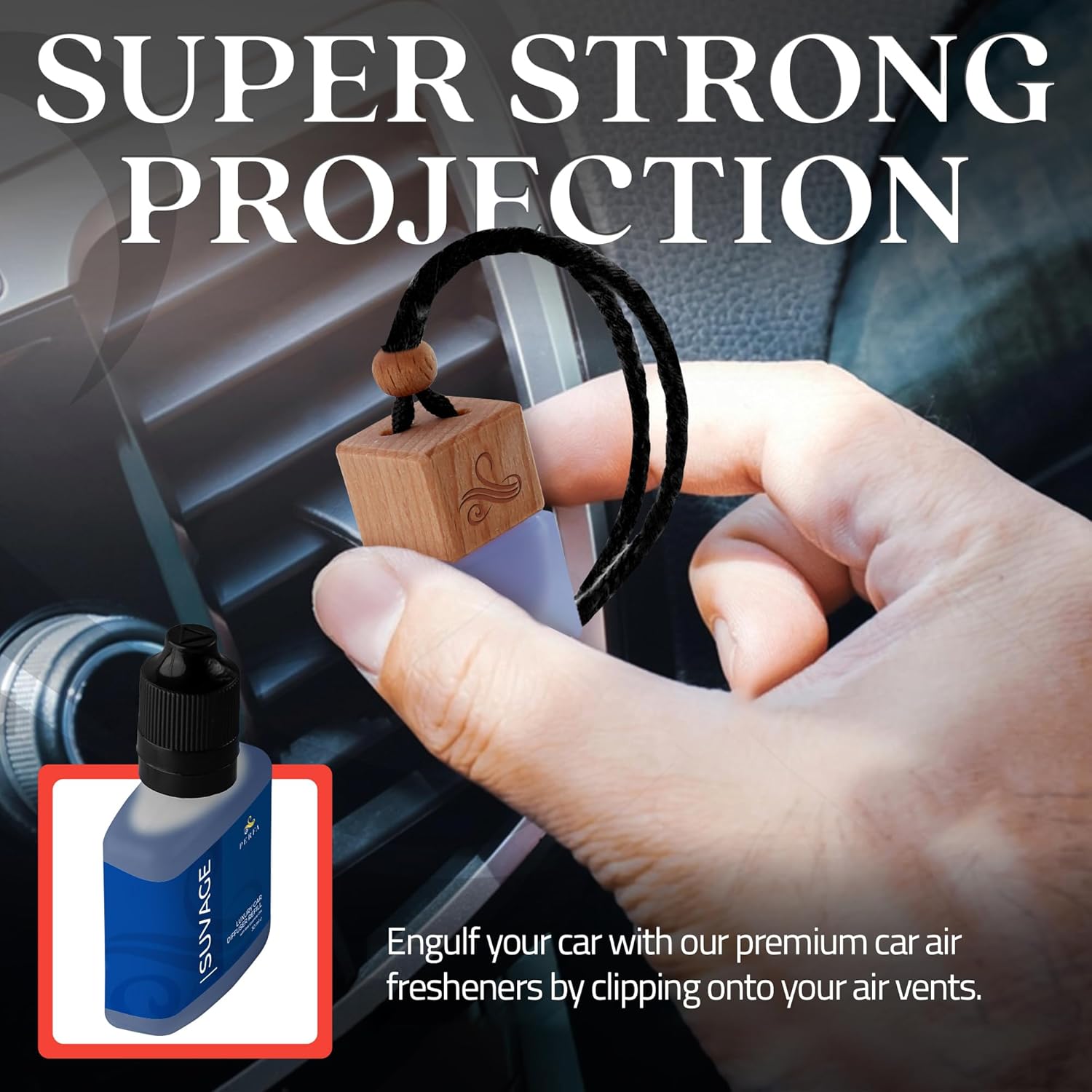 - SUPER STRONG SCENT THROW - Engulf your car with the luxurious fragrance of Sauvage. This Car smell air freshener and car odor eliminator has been specifically formulated to replicate one of the most popular and strongest perfumes on the market. In fact, we use a little bit of the real thing inside this car diffuser, ensuring not only a captivating scent but also effective car odor elimination.