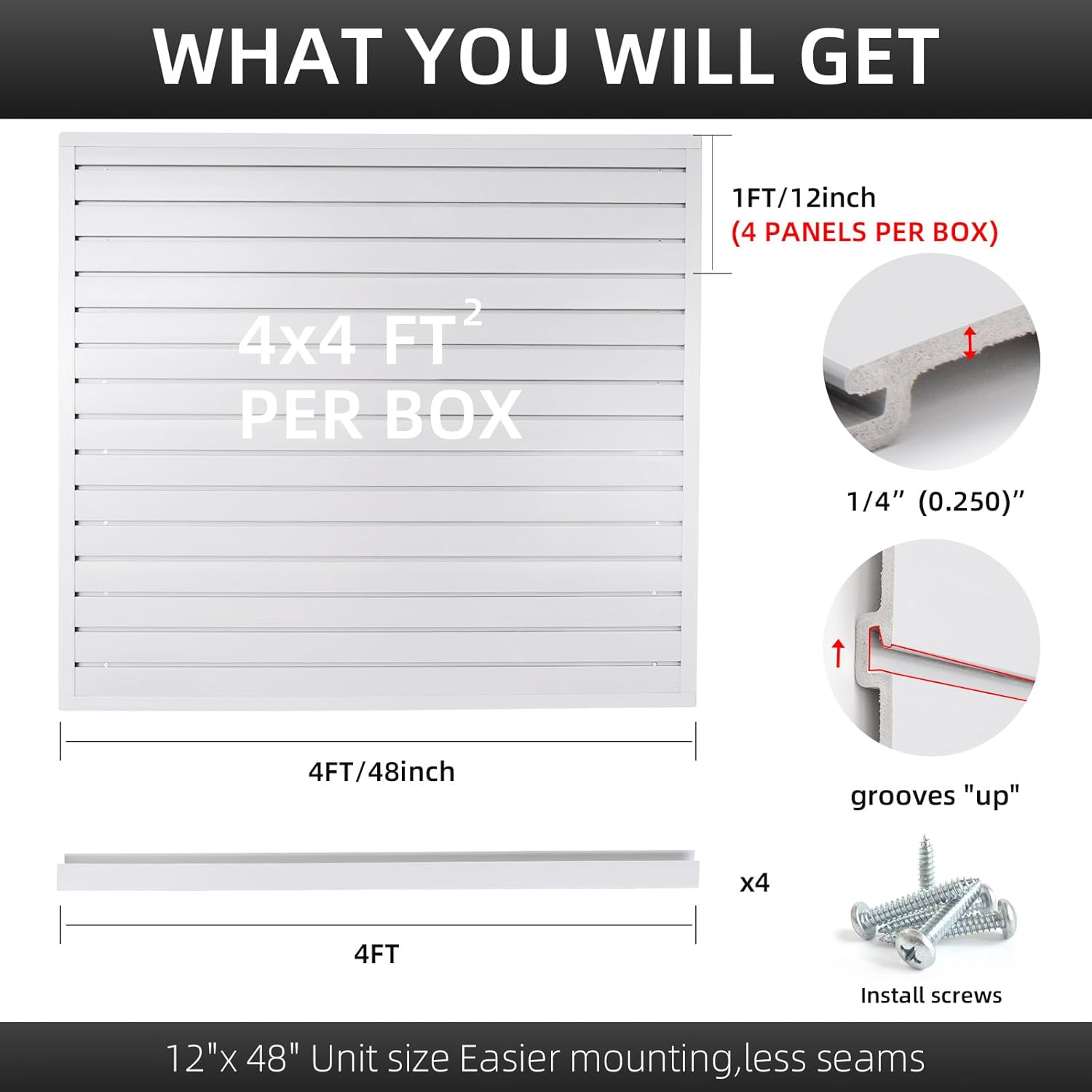 - ADAPT TO CHANGING NEEDS: Our durable garage slat wall panel system includes four 4ft x 1ft slatwall panels, offering a coverage of 16 square feet. Whether used individually or in combination, these slat wall panelings allow you to create the perfect setup that suits your needs. If you need extra slat wall storage organizer space, you can effortlessly expand and customize your ideal configuration by adding more garage slatwall panels. Meet evolving needs with personalized storage flexibility.