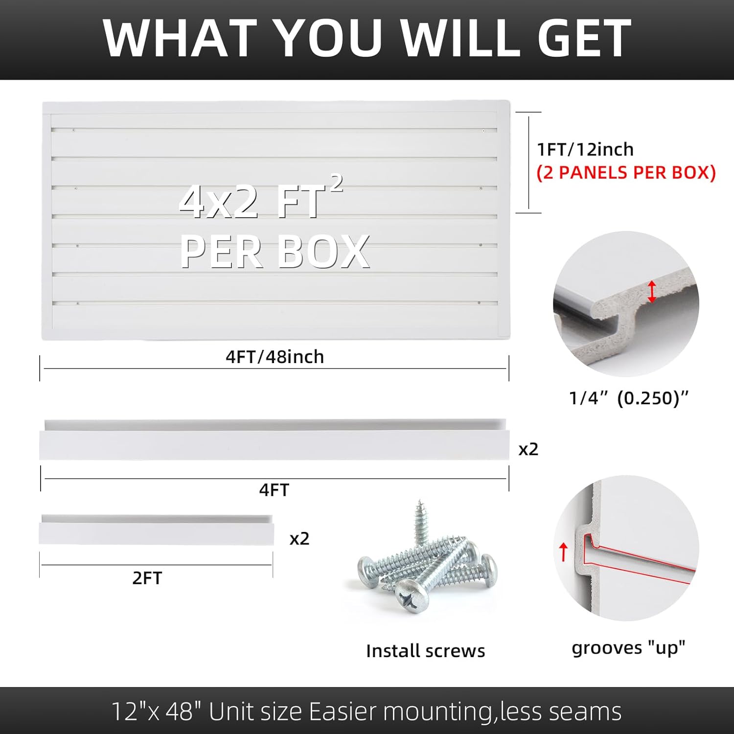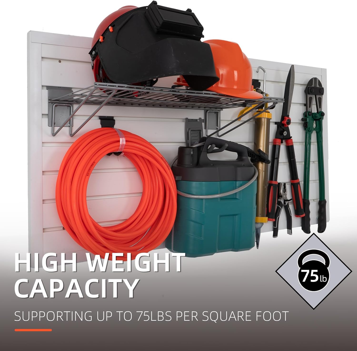 Slatwall Panel Garage Organizer, Heavy Duty Wall Mounted PVC Slat Wall Panels, Tool Organization Peg Board 4ft x 2ft (White)