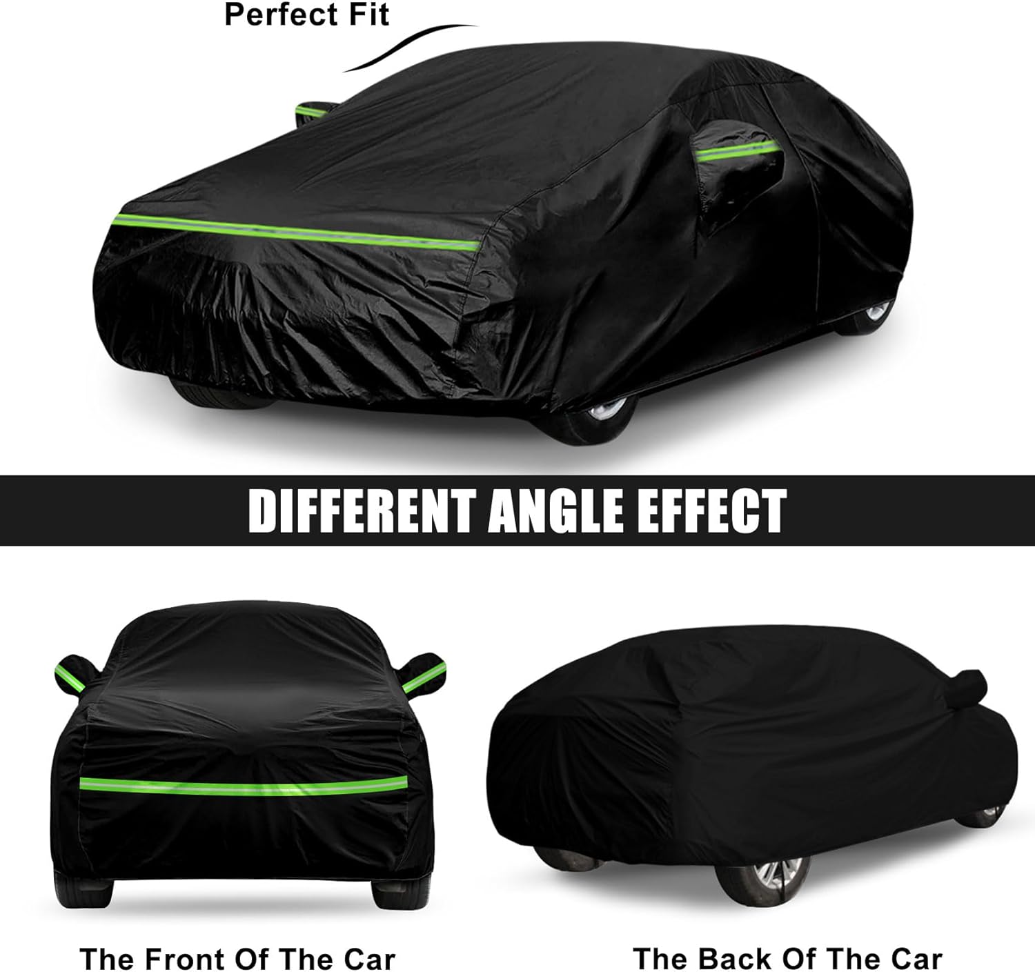 - Upgraded Material: More Waterproof: Made of 210T high-density material, which is thicker, more durable and more waterproof than 190T. The water pressure is 1500, which is enough to deal with most rain and snow weather, and can be placed outdoors for a long time.Inner thicker cotton backing protects your car's painting