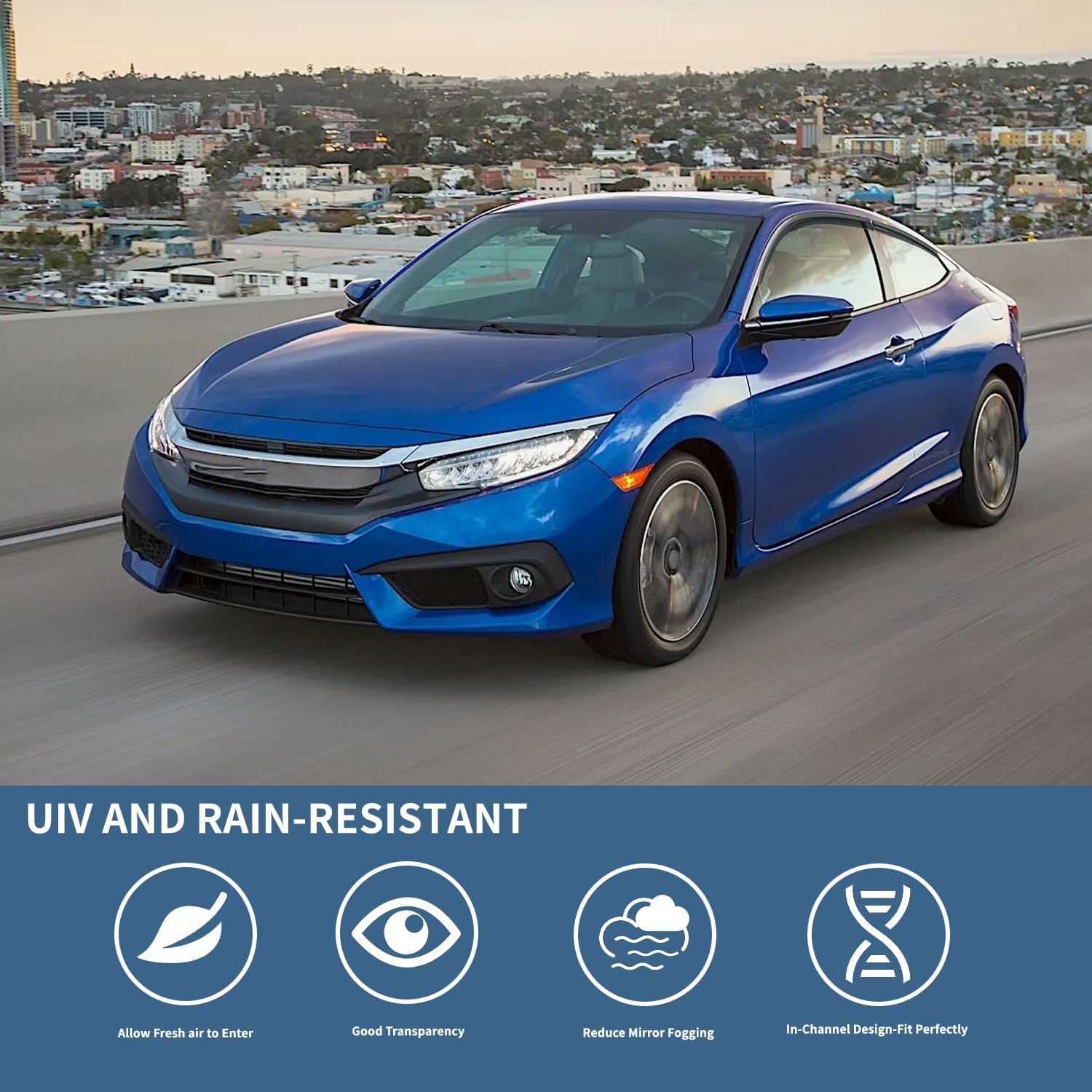 - ăFITMENTă: 4pcs sun rain snow guard wind deflector vent shade side window visors compatible with Honda Civic 2016 2017 2018 2019 2020 2021 (16-21) 4d/4dr sedan model