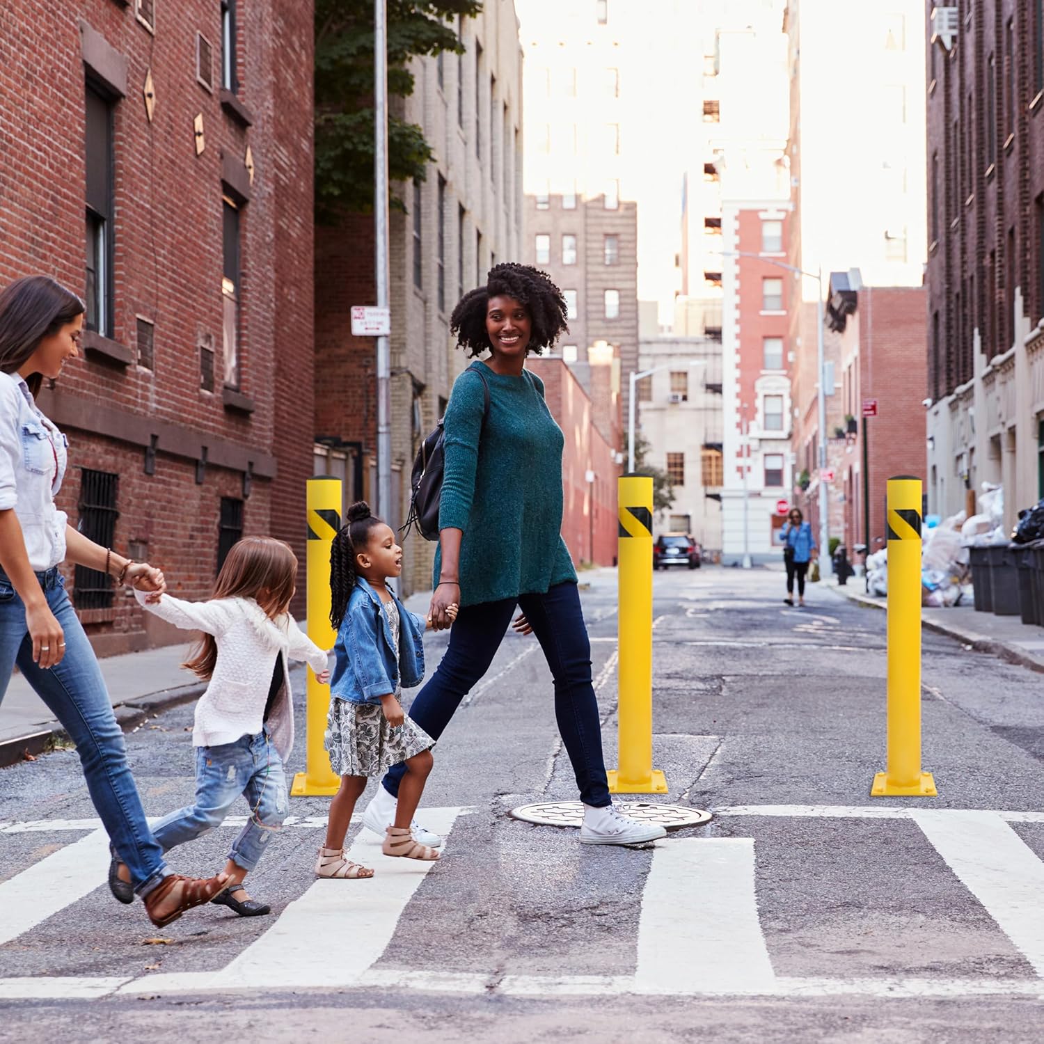 - [Enhanced Visibility]: Powder-coated bright yellow finish; Tops of our bollards are wrapped in 3in (7.6cm) black and yellow Department of Transportation compliant reflective tape for nighttime visibility