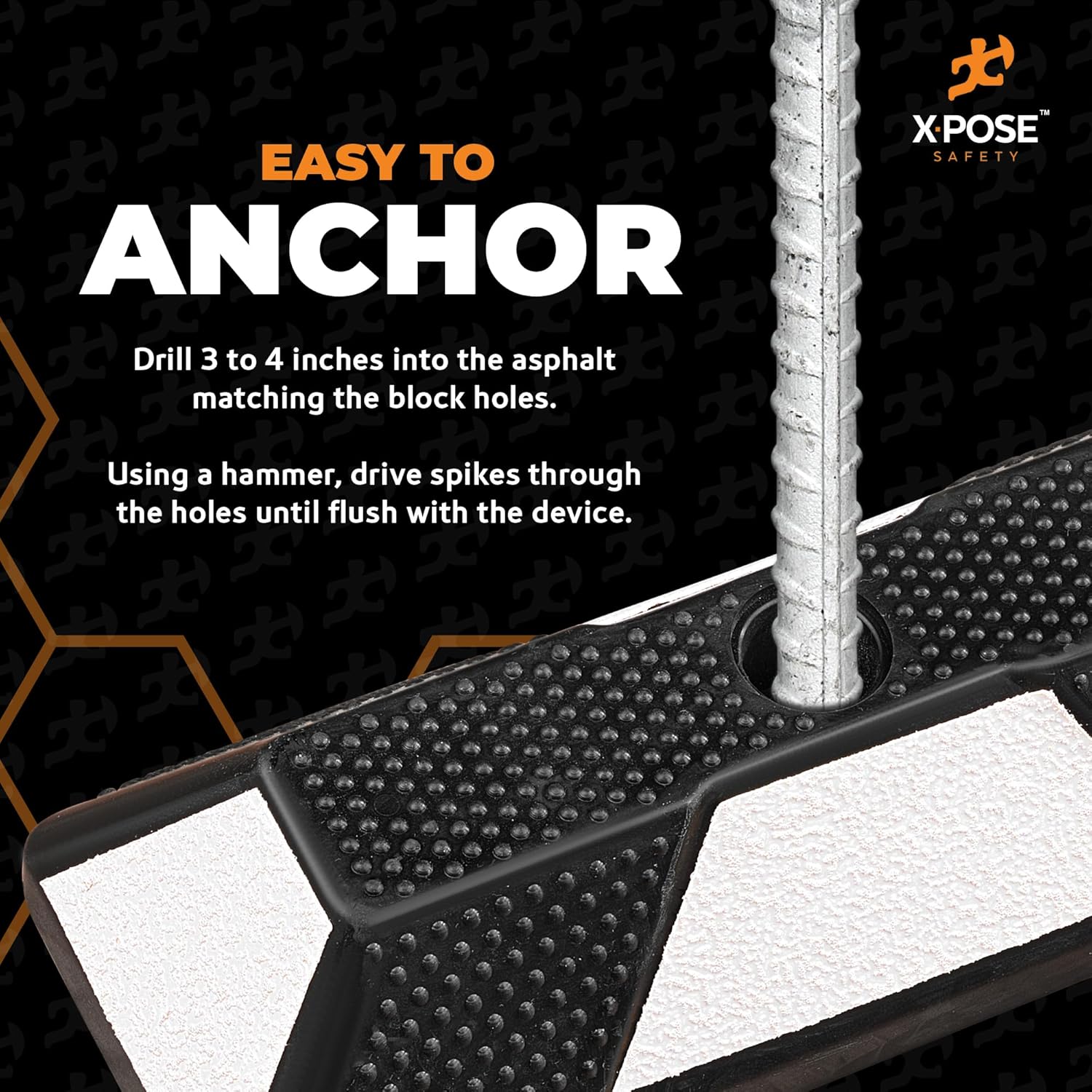 Xpose Safety 48" Heavy Duty Rubber Parking Stopper – 6 Pack Wheel Blocks for Garage, Driveway, or Ramp – Car Bumper Stop with White Reflective Strips – Removable Floor Mount