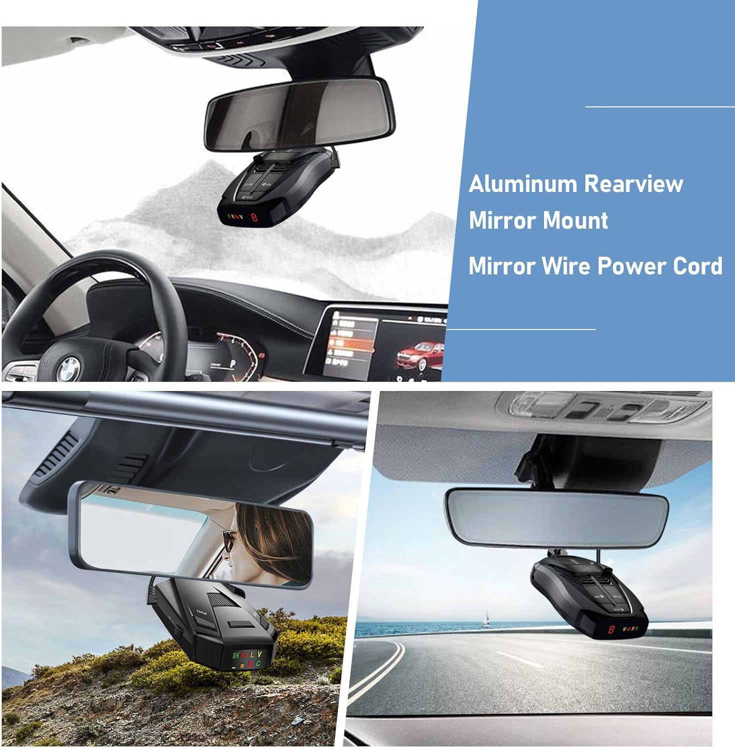 - Packaging list: 1 Radar detector mirror mounted aluminum bracket Ă— 1 (disassembling accessories),2 rearview mirror plug cable Ă— 3 (Strap Ă— 3),3 Instructions