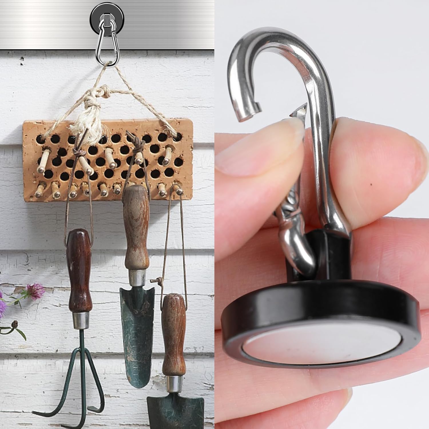 - STRONG MAGNETIC HOOKS: Our magnetic hooks with swivel carabiner hooks are made of neodymium magnets to ensure strong attraction. The holding capacity can reach 200 lbs vertically and 66 lbs horizontally, heavy duty magnetic hooks are suitable for hanging