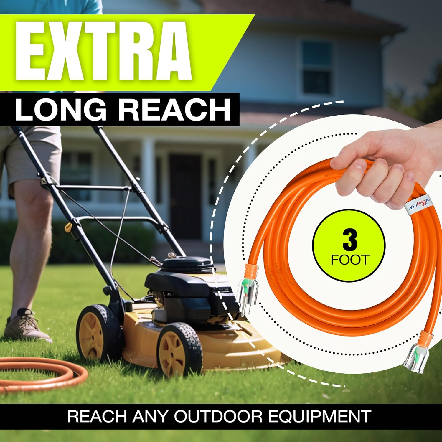 - WITHSTANDS WEAR & TEAR: Featuring a robust vinyl jacket, your new 3 prong extension cord stands up to oil, grease, moisture, and abrasion, safeguarding against electrical hazards and wear. This power cord extension ensures safe operation across diverse environments, making it a trusted companion for any task. The durable construction also contributes to longevity, ensuring that the appliance extension cord continues to perform under tough conditions without compromise.