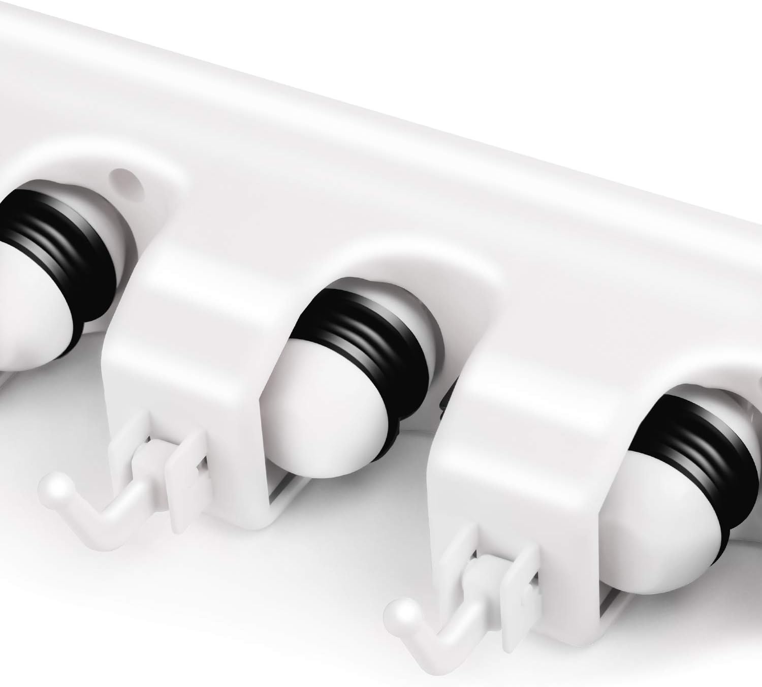 - None Slide Design Broom Holder - The broom holder wall mount is made of high quality ABS material. Thanks to the spring loaded, double rubber gripped slots, whether wet mops, dirty rakes or baseball bats, nothing slips from our mop and broom holder wall mount.