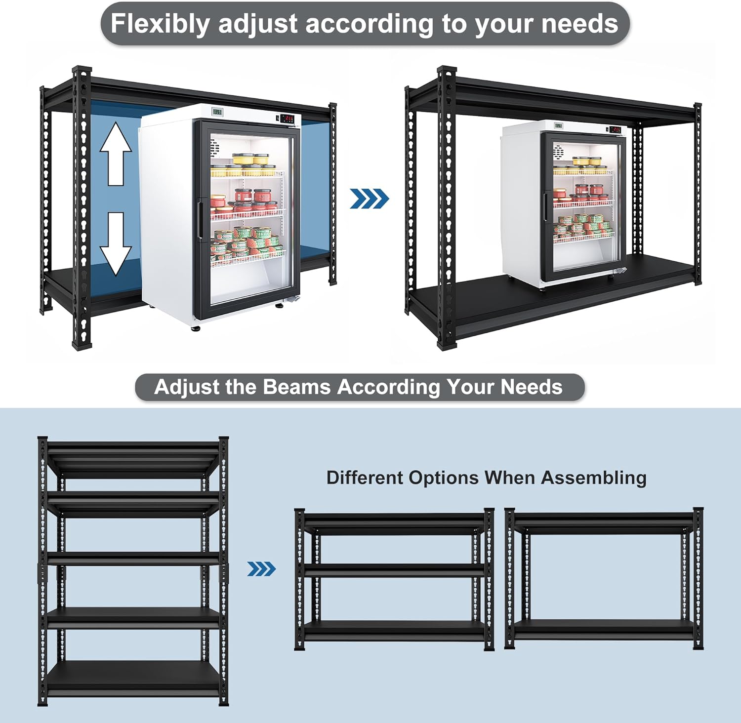 5-Tier Garage Shelving Heavy Duty, 72" Metal Shelving Unit - 2250 lbs Load Capacity, 40"W x 18"D x 72"H (Black)